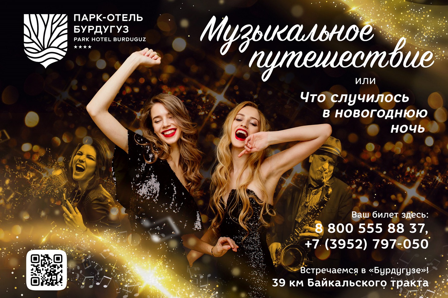 Новый Год – ночь волшебства, когда исполняются самые трепетные желания. Сердце требует чудес, радостного смеха и, конечно же, музыки – любимых ритмов, сладостных мелодий и песен, уносящих в воспоминания… В парк-отеле «Бурдугуз» вы услышите и стильный джаз тридцатых, и зажигательный твист пятидесятых, и золотые хиты девяностых.