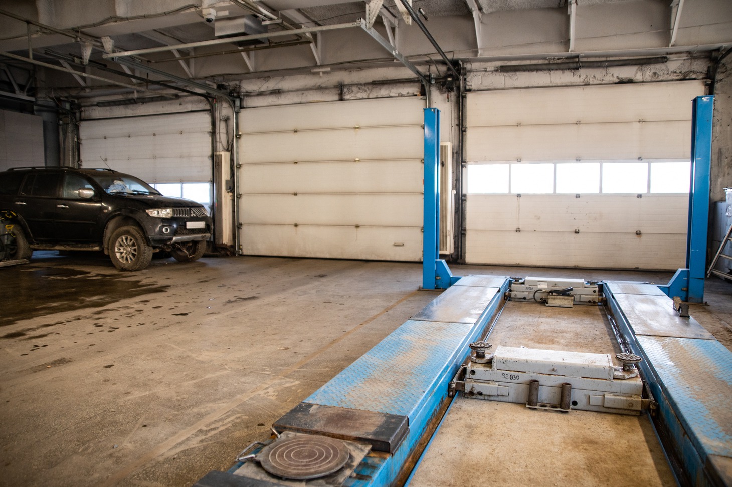 В зоне долгосрочного ремонта стоят большие грузоподъемники, здесь выполняется капитальный ремонт двигателя, подвески, снятие/ установка/ремонт рулевой рейки. Для работы электрика используется ножничный подъемник, который хорошо подходит для электротехнических работ.