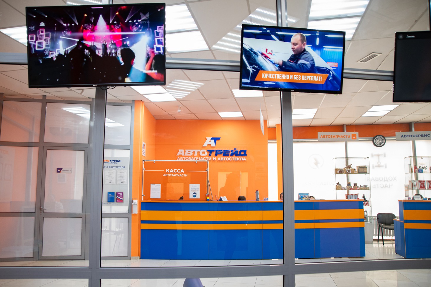 СТО «Автотрейд» уже в течение полутора лет работает на Академической, 25а, на первом этаже большого стеклянного здания, недалеко от остановки «Южная». Знакомая сине-оранжевая вывеска. Место удобное — напротив большая парковка, поэтому можно без проблем оставить автомобиль, чтобы прийти в автосервис, например, за консультацией или забрать запчасть.