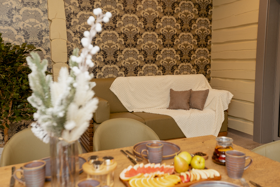 В каждом доме есть просторная обеденная зона, тёплая терраса и закрытый дворик, где можно приготовить вкусные блюда на гриле, либо заказать в ресторане блюда на компанию. Мы подготовили все что вам может понадобится для полноценного отдыха.