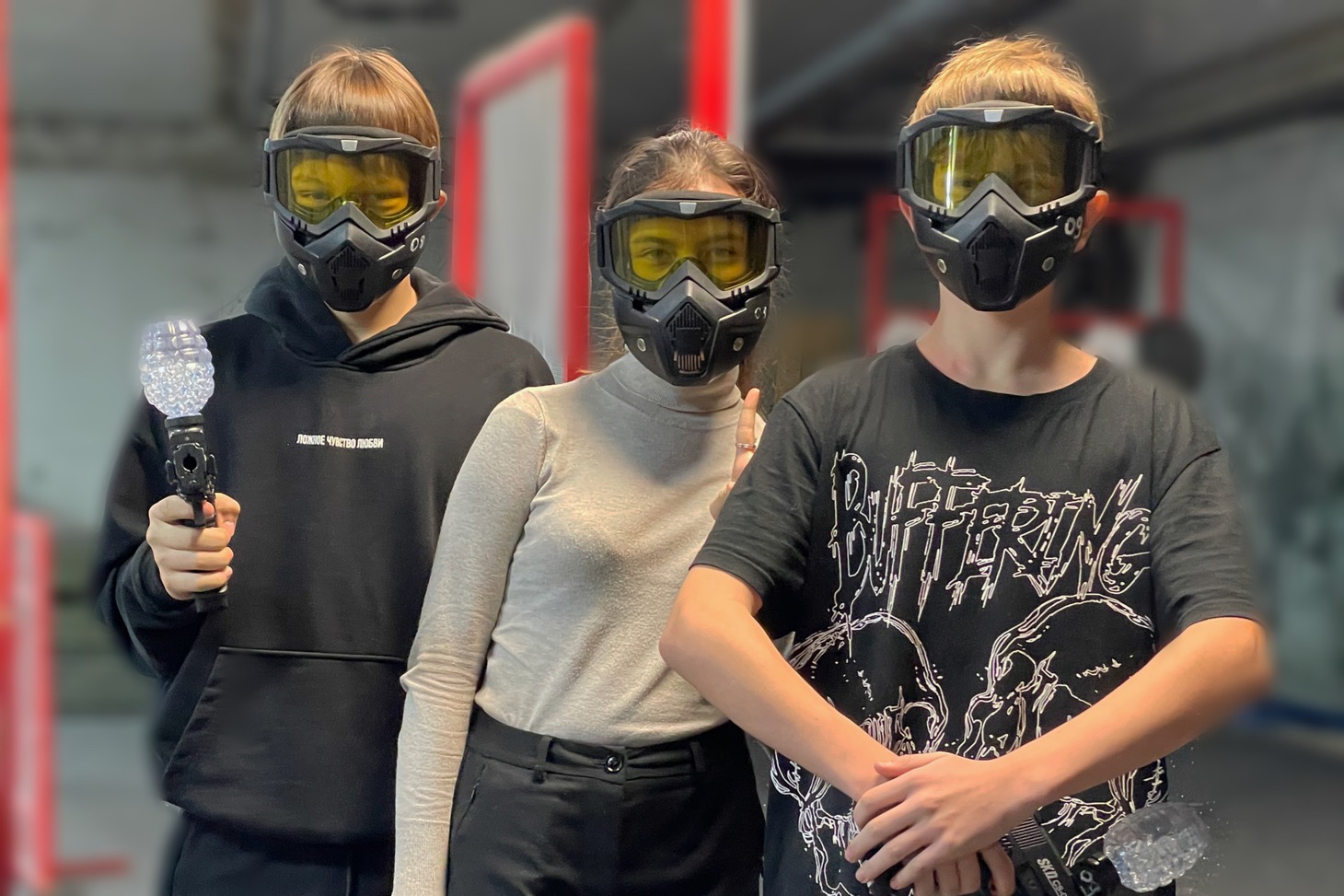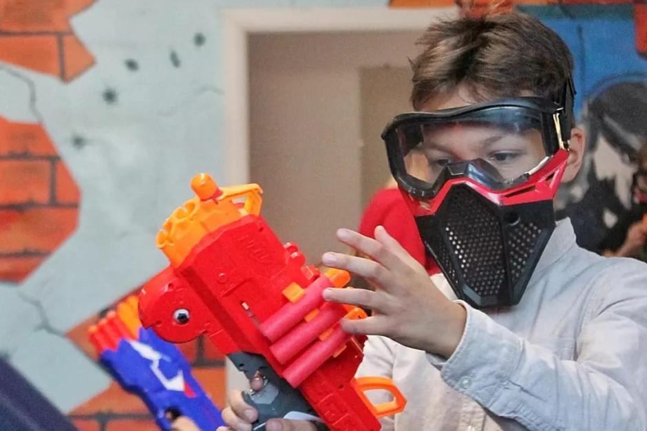 — Никаких синяков и пятен краски! Нёрф — безопасная игра. Пули при попадании не причиняют вреда и не пачкают одежду. Всем выдаются защитные очки и маски.