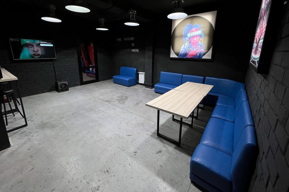 Клуб находится в центре Иркутска на улице Подгорной, 47, в цокольном этаже. В нем несколько помещений: VR-Arena** со свободным передвижением, зал Standard-VR***, в котором расположены стационарные игровые станции, лаунж-зоны со столами и удобными креслами, где могут с комфортом разместиться компании. Кстати, сюда можно прийти со своей едой и напитками или заказать доставку. В помещениях хорошая вентиляция, нет духоты, несмотря на отсутствие окон. Пространство продумано до мелочей, есть даже караоке и микроволновка, чтобы разогреть пиццу. Отдельного внимания заслуживает комната для игры в PlayStation 5 — уютные кресла, две приставки с большими телевизорами и полная шумоизоляция: погрузиться в игру можно с головой.