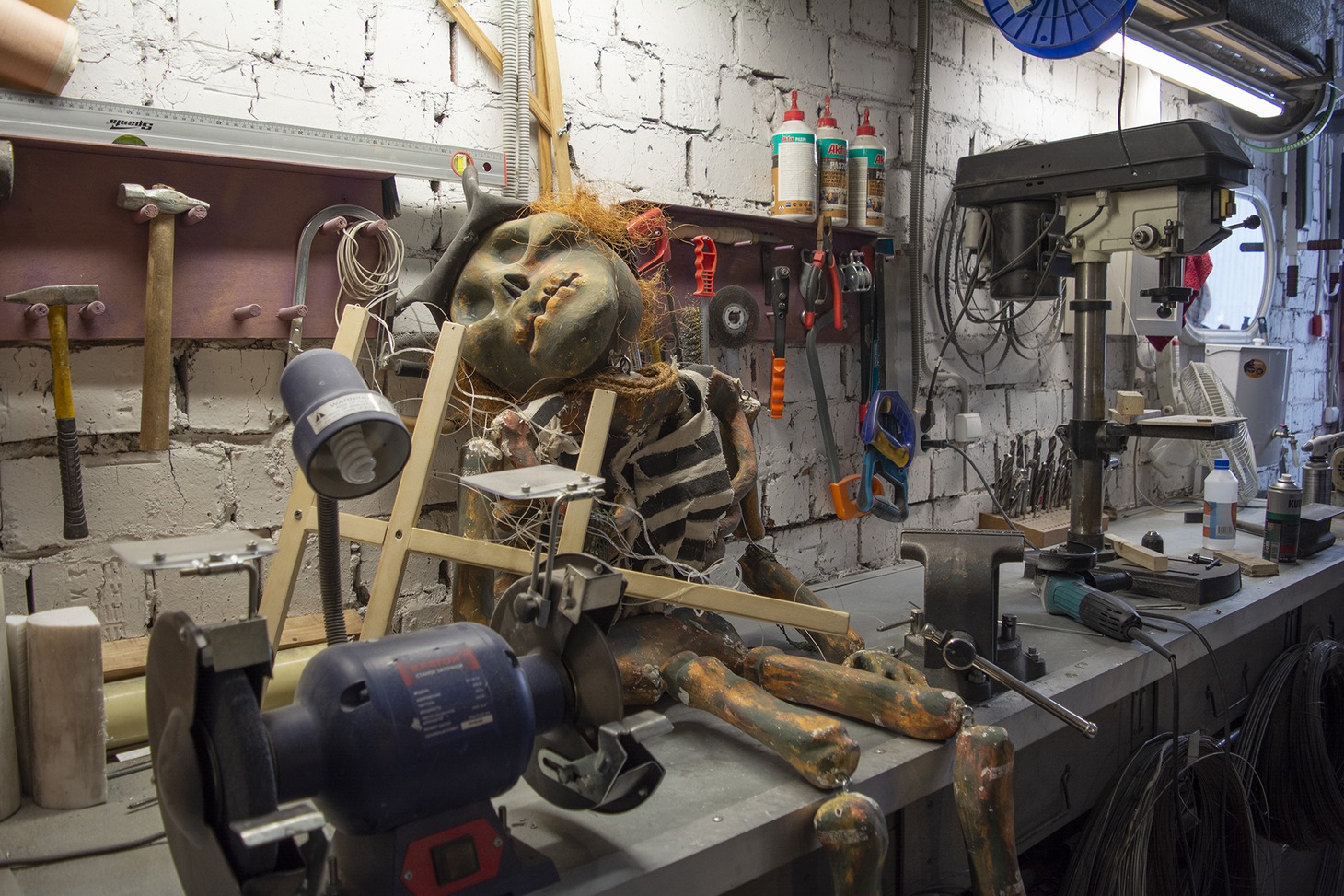 А что за столы выставлены в проходах? (мы перемещаемся к театральным цехам, чтобы посмотреть, как идет процесс производства кукол и реквизита постановки «Принцесса Крапинка»).