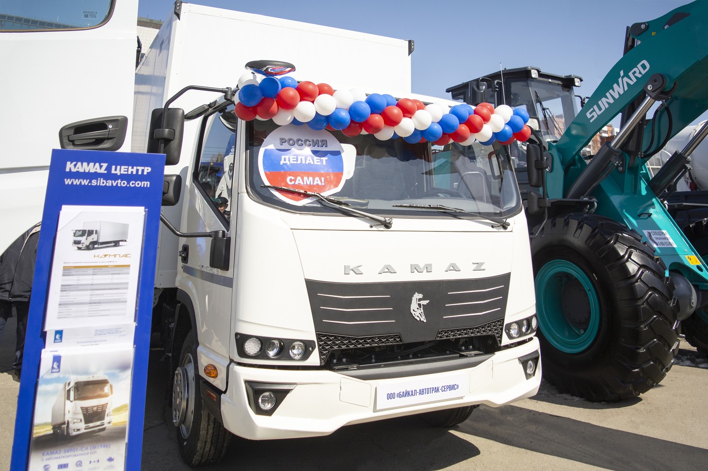 «Байкал-АвтоТрак-Сервис» уже много лет принимает участие в специализированных выставках. Представленные в этом году в Сибэкспоцентре модели — автомобили нового поколения. Уже с первого взгляда эти автомобили отличаются от привычных «КАМАЗов» с оранжевой кабиной. Это современные грузовые автомобили которые задают новые стандарты экономичности, комфорта и надежности в сфере магистральных грузоперевозок.