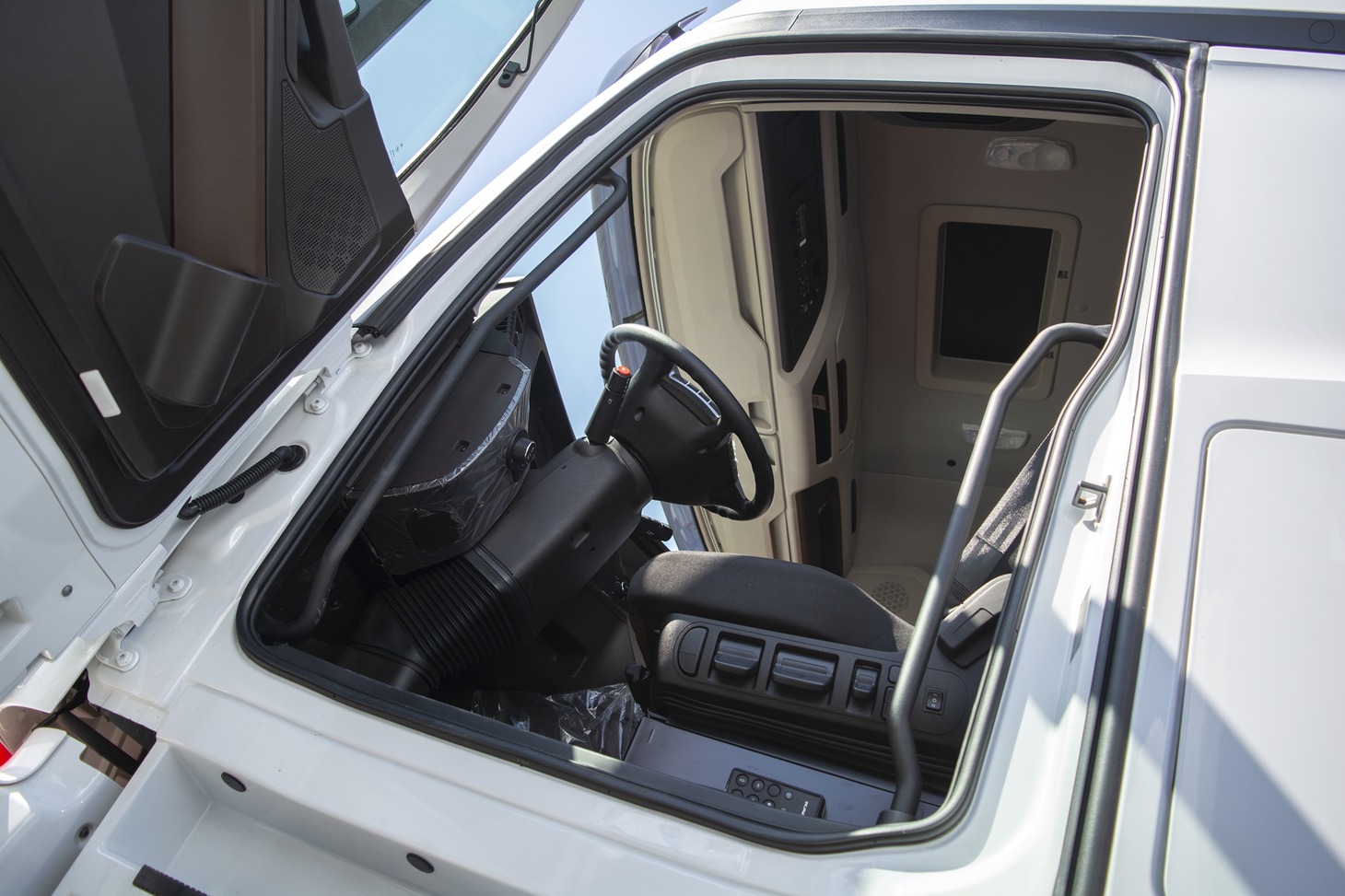 – За счет большого размера в кабине отсутствует моторный туннель и постелен ровный пол, — рассказал представитель компании «Байкал-АвтоТрак-Сервис» Константин Кононов. – Водительское сиденье – с подогревом. Модель оснащена самым современным оборудованием: центральная консоль повернута к водителю, главное место в ней занимает экран мультимедиа-системы с сенсорным экраном. Тысячу таких моделей уже закупила крупная компания ITECO.
