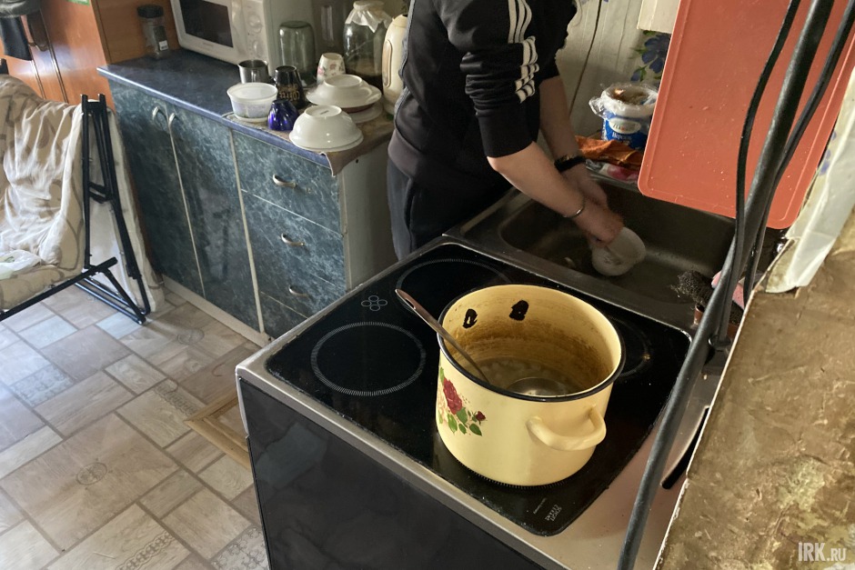 Семья из пяти человек ютится в одной комнате. В небольшом коридорчике громким лаем нас встретила собака, которую Катя поспешила закрыть в туалете. Осматриваюсь: при входе слева стоит кухонный стол, справа — раковина и плита, а возле стены и окна — два дивана. Дома находится только пожилой мужчина, это отец Елены, который живет с ней и присматривает за внуками, младшая дочка — в садике, средний сын гуляет.