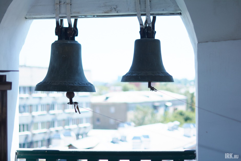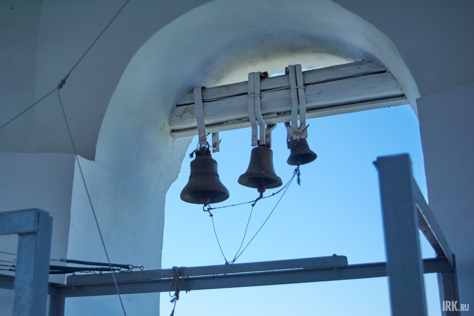 Несколько колоколов висят в линию. Только два из них древние — первый и последний, остальные изготовили и установили в 1998-м году. Старинные колокола были безжалостно уничтожены в годы репрессий, как и все остальное в этом храме.