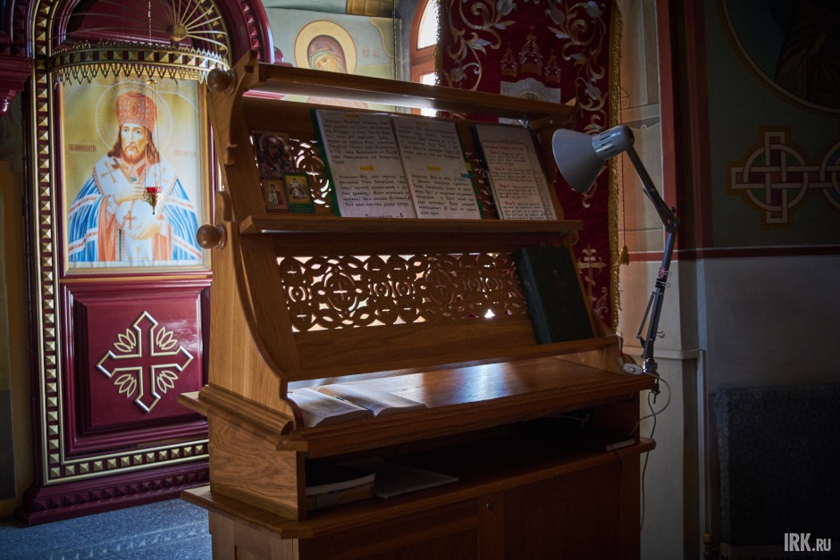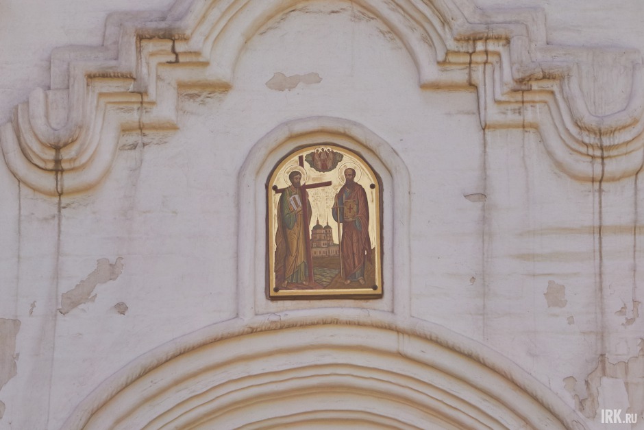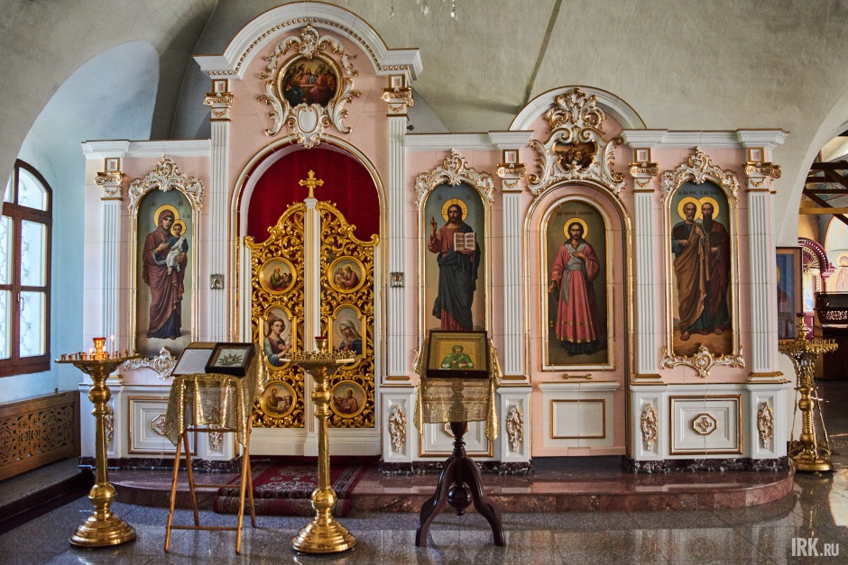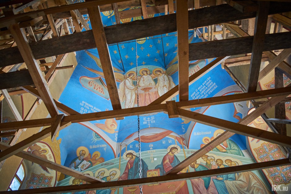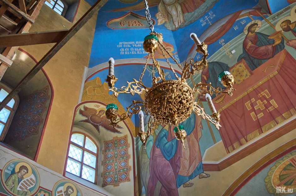 Высота потолка помещения 20 метров. Сейчас в храме идут работы по росписи стен по специально разработанному проекту и с благословения митрополита Максимилиана. Установлены леса, работает иркутский иконописец.