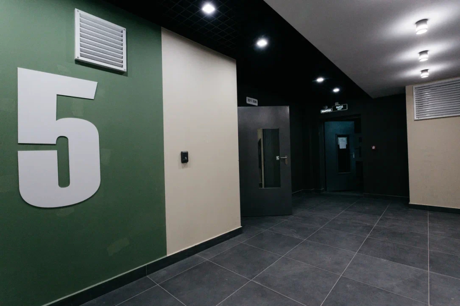 Велосипеды в велосипедной, коляски в колясочной, а грязь с лапок домашнего питомца — в лапомоечной на первом этаже. При этом нет никакого крыльца и пандусов – путь к лифту, колясочной и велосипедной в одном уровне с улицей.