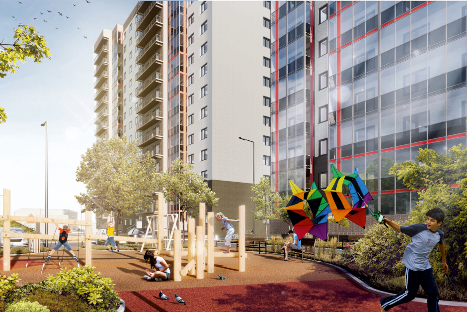 Особое внимание застройщик уделяет благоустройству двора, в котором будет чем заняться жителям всех возрастов. Но в центре внимания, конечно же, дети, поэтому большая часть придомовых территорий отведена именно для детского отдыха.