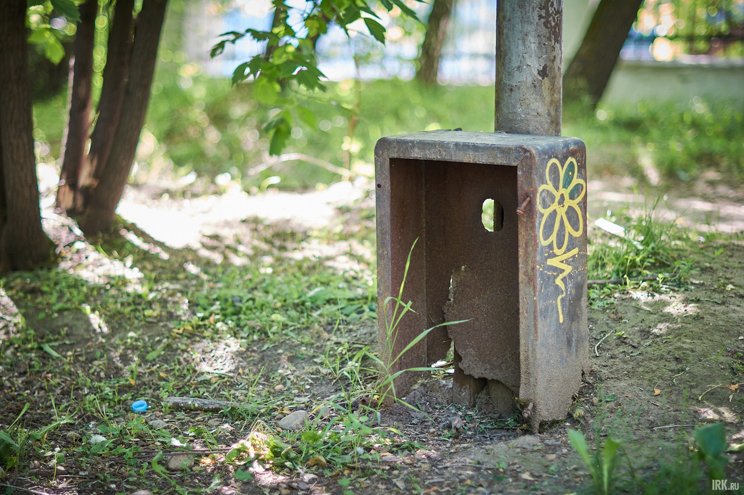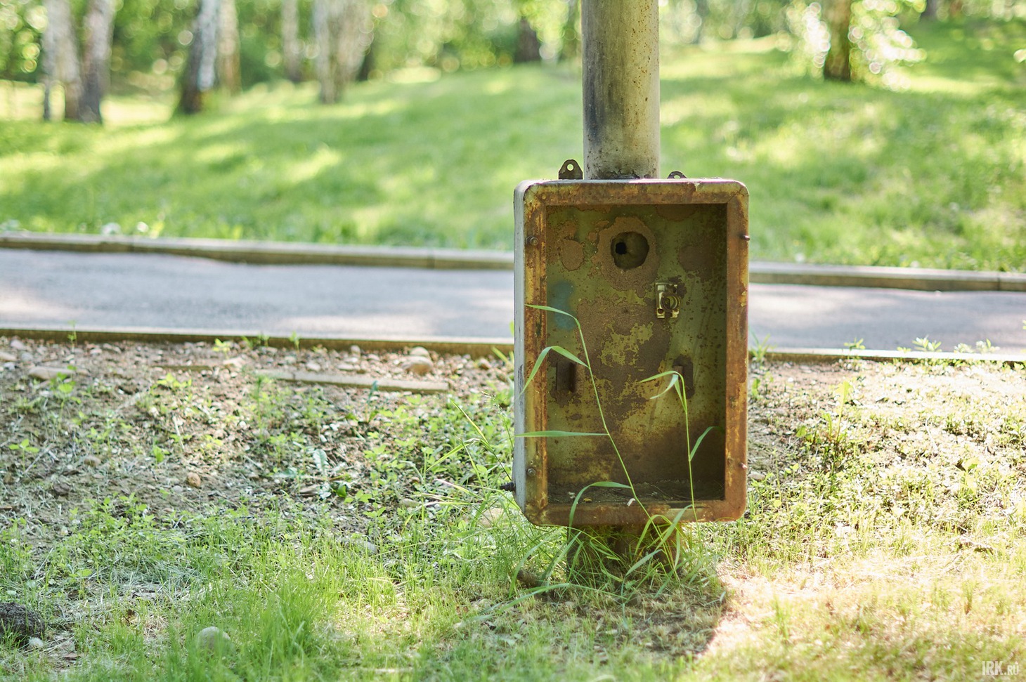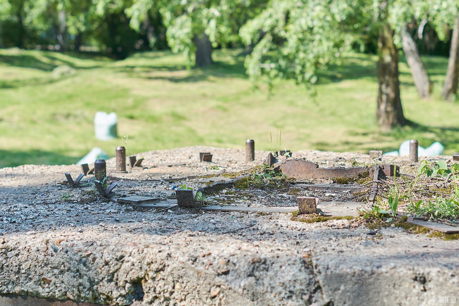 Когда-то здесь находился детский парк с аттракционами, о чем сейчас напоминают лишь торчащие из земли бетонные плиты и пустые коробки блоков питания.