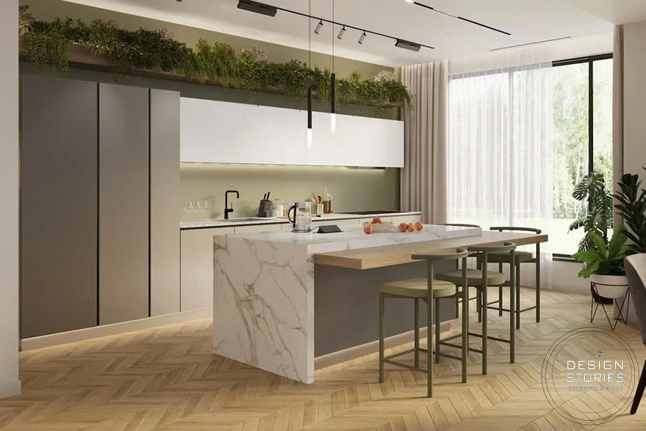 Дизайнеры отмечают, что сейчас есть запрос на экологичный дизайн. Люди стали тянуться к экологическому минимализму, заботятся о переработке мусора, выбирают натуральные материалы, дерево, камень, бетон, спокойные цвета: песочный, травянистый, много растений.