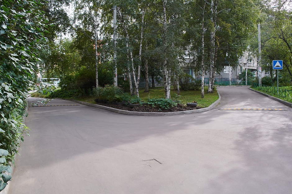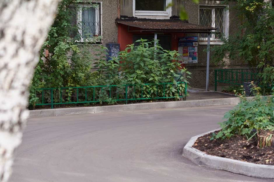 – Заменили асфальтовое покрытие, бордюрный камень, благоустроили входы в подъезды, установили ограждения, – показывает Максим Владимирович. – Особо отмечу сложный момент: сделали уклон асфальтового покрытия таким образом, что после дождей вся вода уходит в ливневый коллектор.