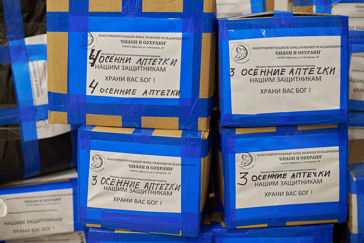 Ранним утром около ворот Харлампиевского храма в Иркутске суетно. Волонтеры грузят гуманитарную помощь по машинам, которые доставят посылки в госпитали, детские дома, бойцам и жителям городов Россошь Воронежской области и Луганск — одноименной народной республики. Неравнодушные жители собрали медикаменты, предметы личной гигиены, одежда и военное снаряжение. Участие в мероприятии также принял благотворительный фонд «Звезда».
