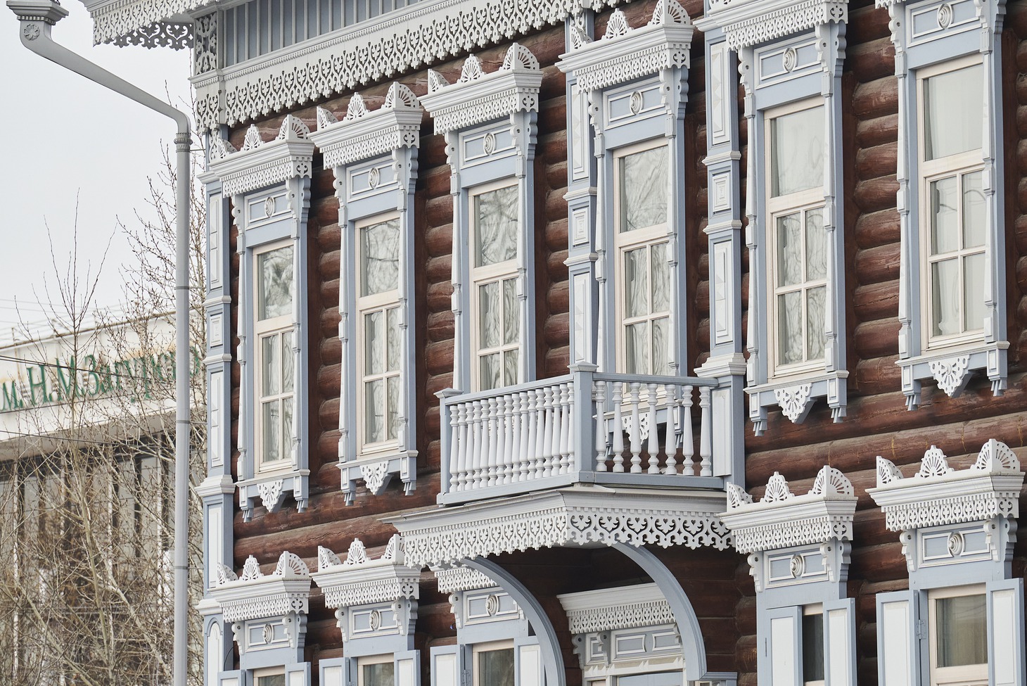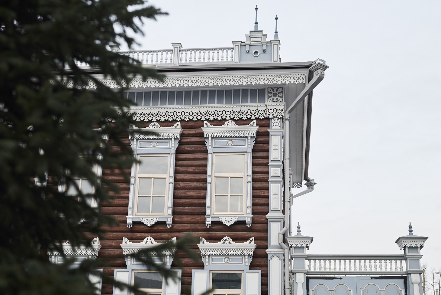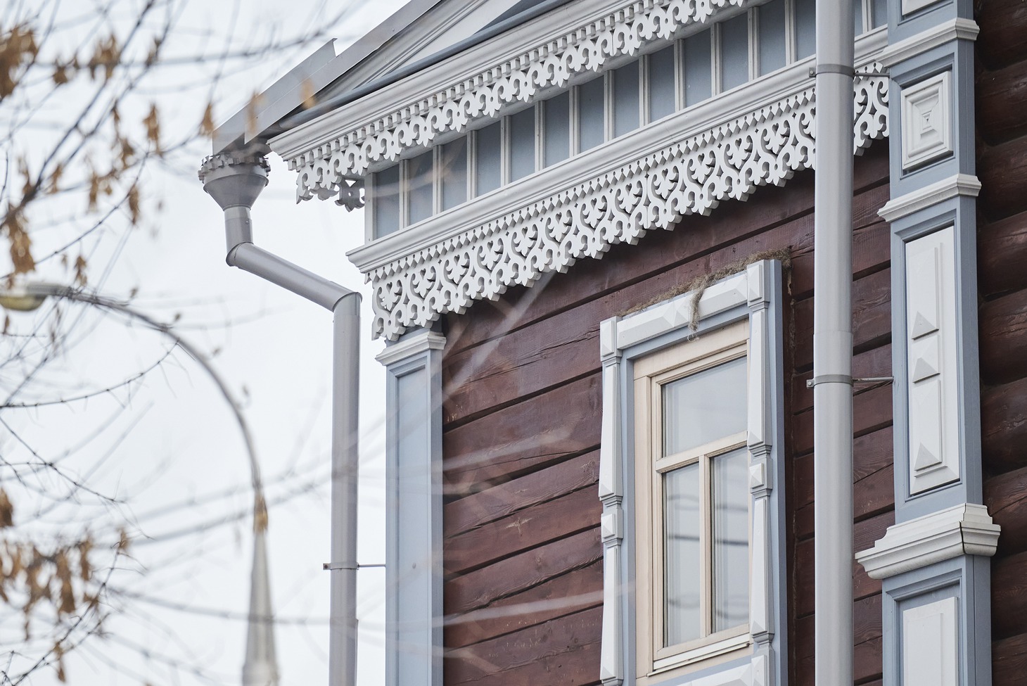 Для этого пришлось заменить фундамент на железобетонный и облицевать его плиткой с имитацией песчаника, перебрать сруб «по бревнышку», стараясь по-максимуму сохранить оригинальные материалы, заново изготовить крышу – и это только начало. Аттик со слуховым окном и угловые аттики, венчавшие декоративные пилястры, пришлось восстанавливать, основываясь на аналогах, сохранившихся на других деревянных домах Иркутска (Степана Разина, 22 и Подгорная, 4). Наличники и лопатки частично сохранились и их удалось реставрировать, а вот фриз и карниз остались только на исторических фотографиях. Но столяры и реставраторы совершили настоящее чудо, вернув дому на Седова, 33 былую красоту и ажурную легкость.