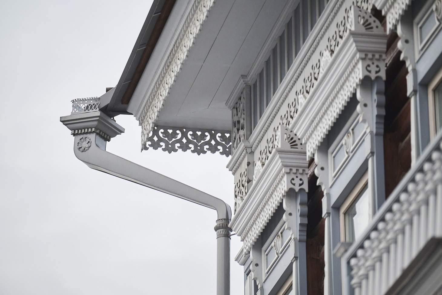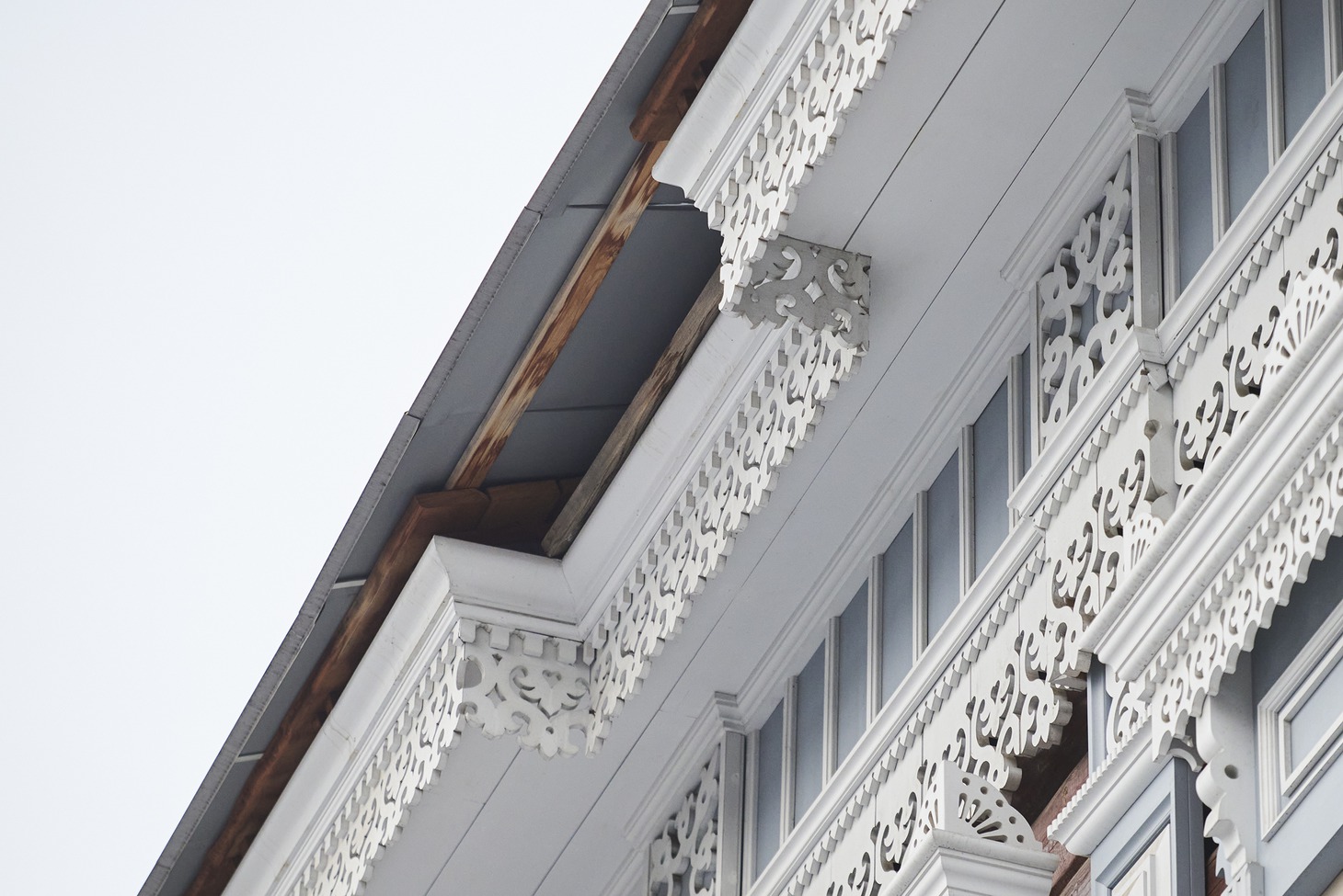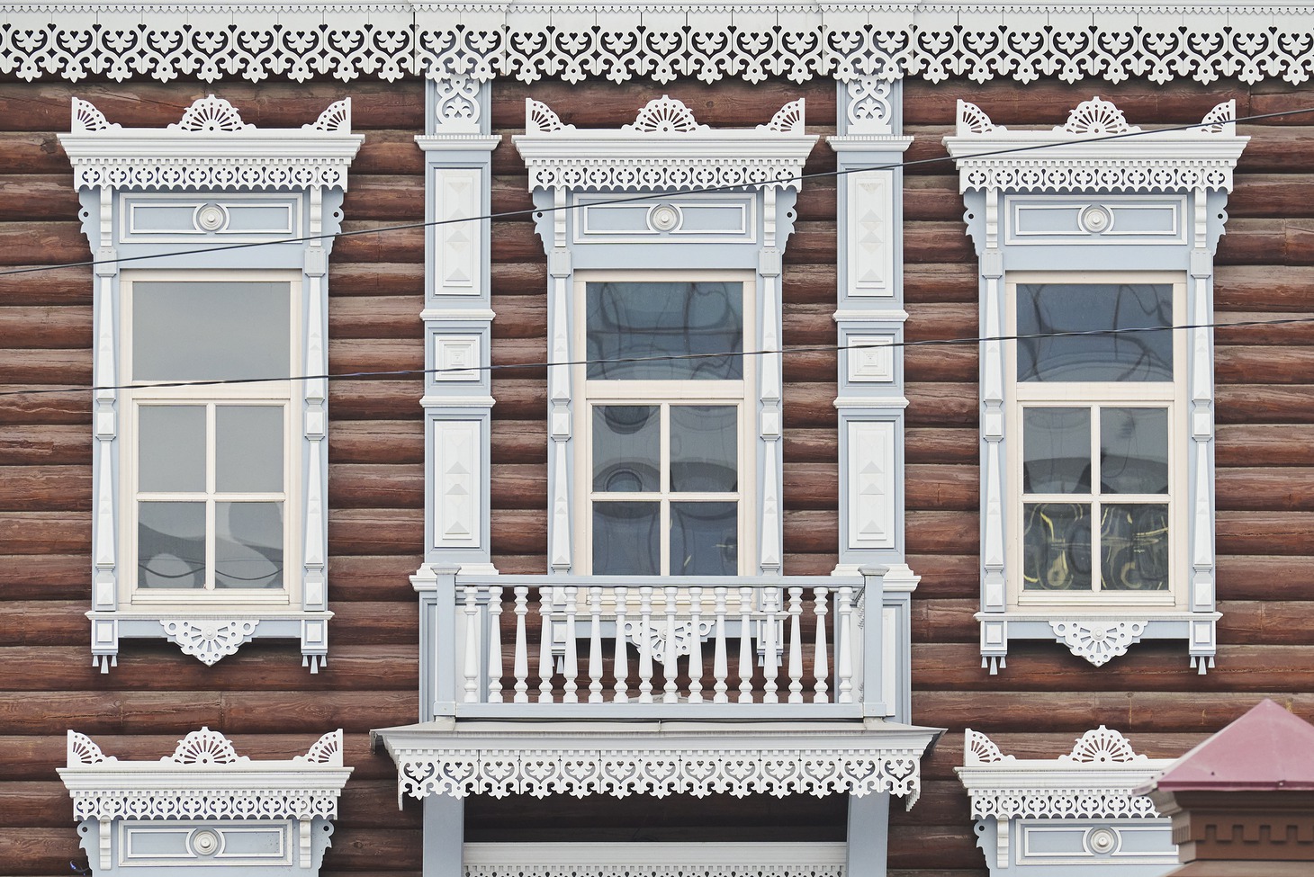 Для этого пришлось заменить фундамент на железобетонный и облицевать его плиткой с имитацией песчаника, перебрать сруб «по бревнышку», стараясь по-максимуму сохранить оригинальные материалы, заново изготовить крышу – и это только начало. Аттик со слуховым окном и угловые аттики, венчавшие декоративные пилястры, пришлось восстанавливать, основываясь на аналогах, сохранившихся на других деревянных домах Иркутска (Степана Разина, 22 и Подгорная, 4). Наличники и лопатки частично сохранились и их удалось реставрировать, а вот фриз и карниз остались только на исторических фотографиях. Но столяры и реставраторы совершили настоящее чудо, вернув дому на Седова, 33 былую красоту и ажурную легкость.