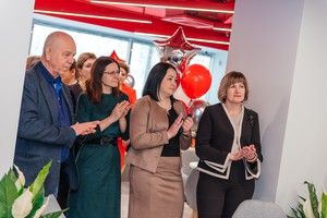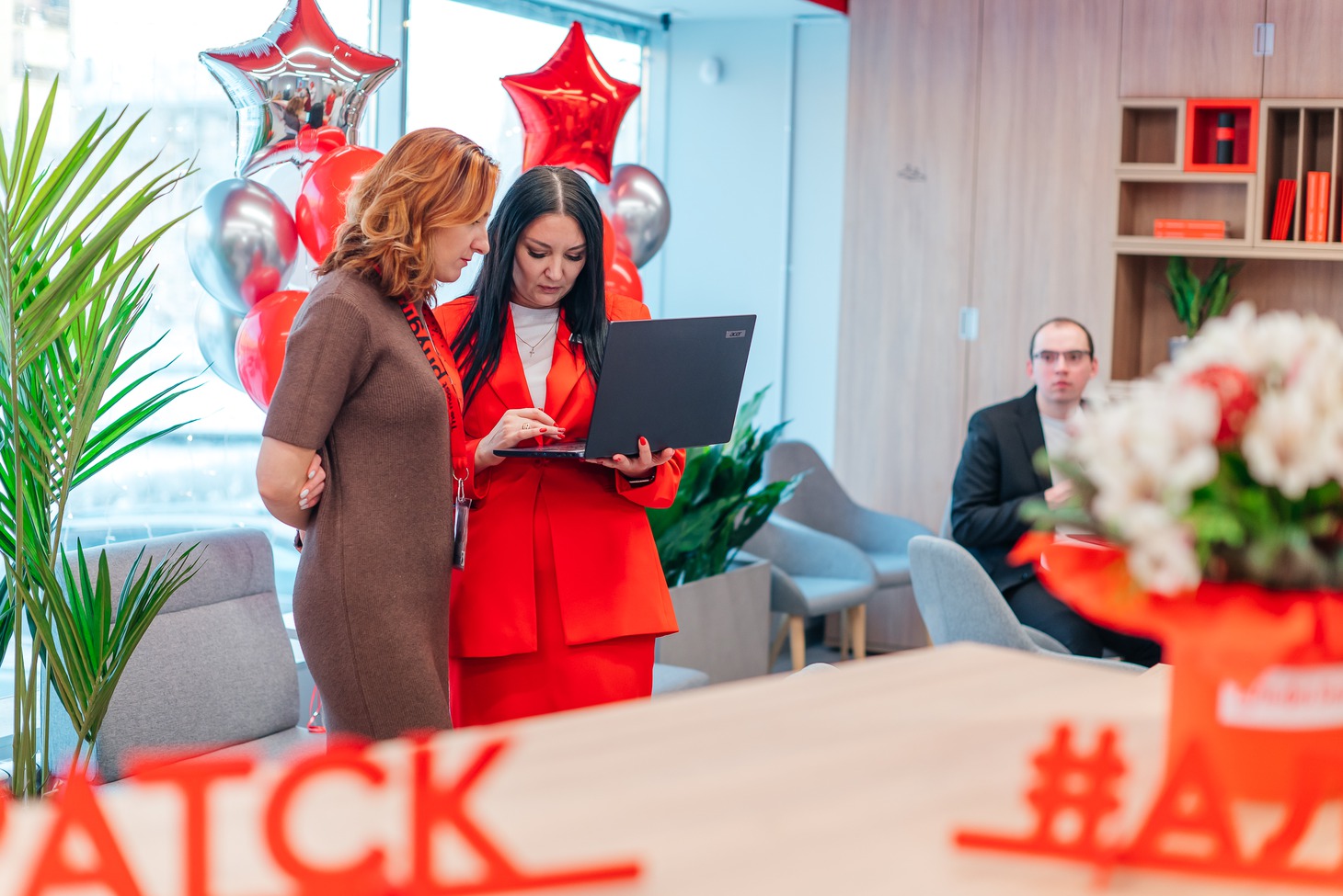 Кстати, вместо разрезания красной ленточки на торжественном открытии символично Татьяна Полевач и Наталья Петухова полили комнатное растение, подчеркивая ценности компании, и пожелав тем самым всем присутствующим благополучия, развития и растущих прибылей.
