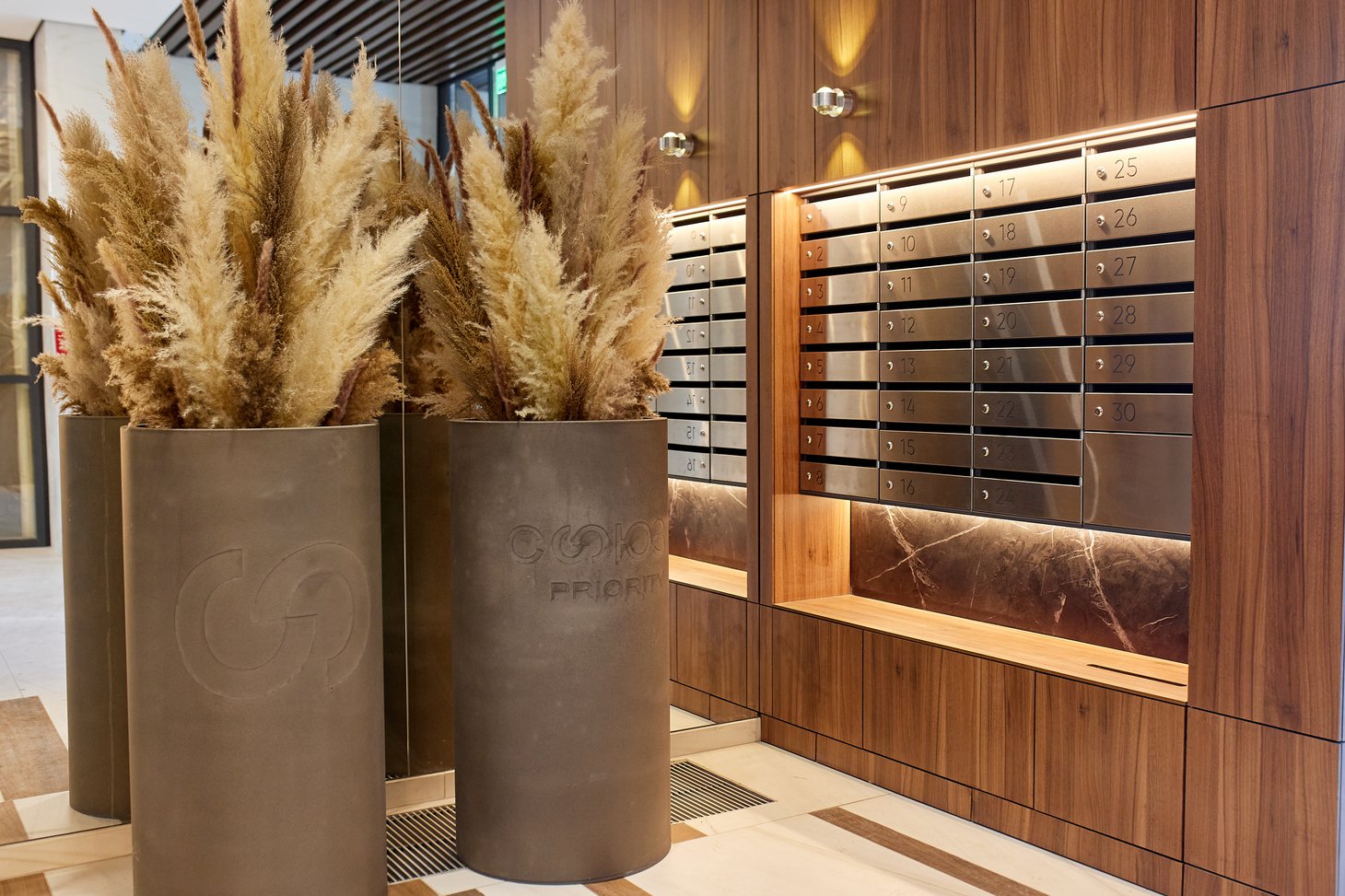 Счетчики воды и электроэнергии выведены в подъезд и скрыты за декоративными панелями. Данные с них отправляются в сервисную компанию автоматически – резидентам ЖК не нужно беспокоиться о том, чтобы не забыть вовремя передать показания. Следить за приборами учета и оплачивать счета можно через приложение на смартфоне, оно же предложит аналитику по расходам ресурсов.