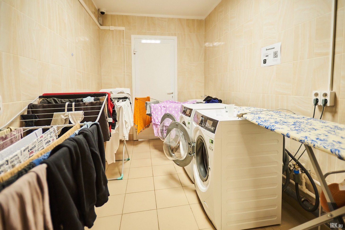 Для удобства студентов этаж разделен на две секции, и в каждой есть все необходимое для комфортного проживания и отдыха: просторная и светлая кухня-столовая с необходимой техникой, комната для занятий и выполнения домашних заданий с рабочими местами и проектором, прачечная, душевые и санузел. Более того, здесь предусмотрены даже помещения для телефонных звонков. А все комнаты представляют собой уютное и функциональное пространство.