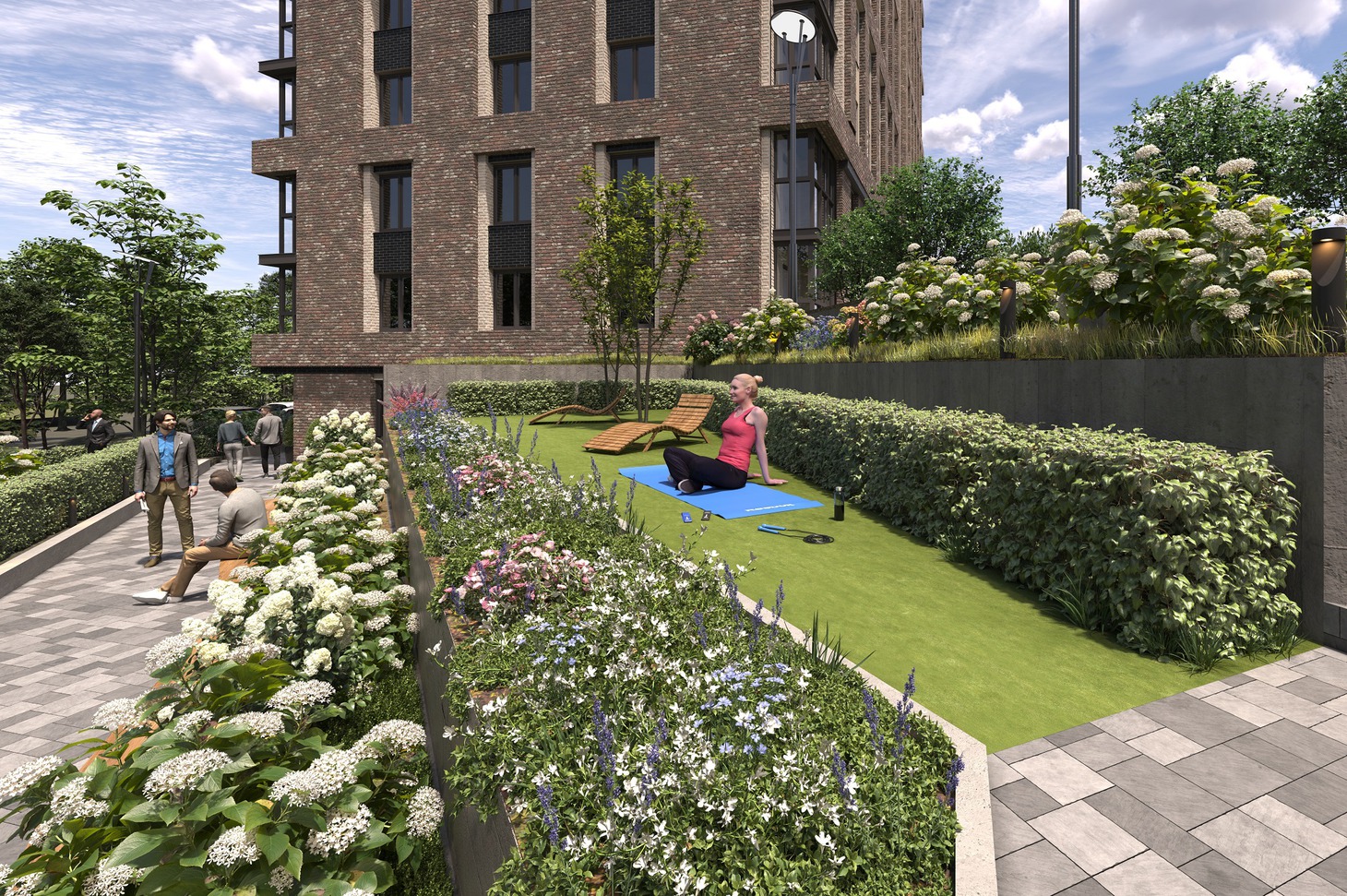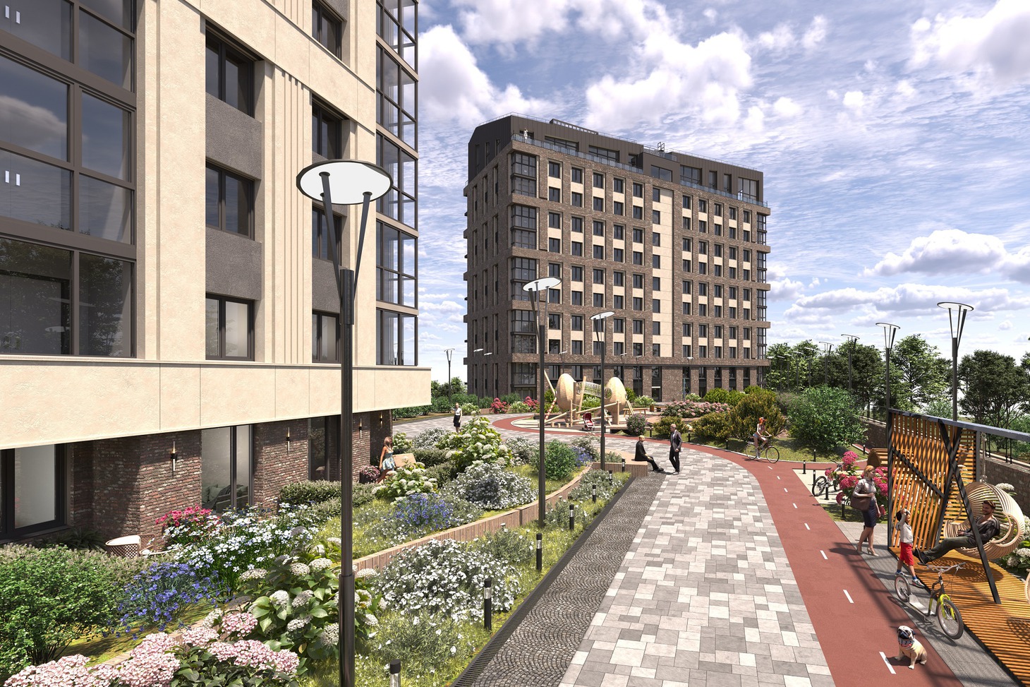Дворовое благоустройство выполнено на стилобате паркинга и спроектировано с максимальным учетом потребностей жителей в зонах отдыха и приятного времяпрепровождения. Это закрытая территория, на которой расположены многочисленные места отдыха и развлечений. Пока дети могут поиграть на безопасных площадках, оборудованных резиновым покрытием, взрослые могут прогуляться по территории или позаниматься спортом на свежем воздухе в зоне воркаута. Те, кто увлекается велосипедным спортом, придут в восторг от обустроенной велодорожки. А те, кто просто хочет посидеть с книгой, пообщаться с друзьями или выпить кофе, могут расположиться в тени перголы или уличных креслах.