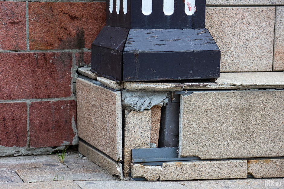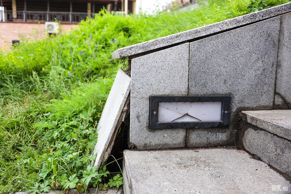 Общая картина пространства складывается из мелких деталей. Так и здесь: если смотреть на 130-й квартал в целом, со стороны, то он выглядит вполне симпатично: деревянная архитектура, милые улочки. Но стоит приглядеться, и в глаза бросается все то, чего в месте, которое считают визитной карточкой Иркутска, быть не должно. Уже на входе в квартал со стороны скульптуры Бабра можно наблюдать разбитые лестницы. У одной из них почти разрушена нижняя ступенька, а на перилах сломанную плитку частично заменили на другую, отличающуюся от «родной» цветом и узором. Лестниц в квартале много, но их состояние оставляет желать лучшего: местами отвалилась облицовочная плитка, где-то сломали подсветку, смонтированную у ступенек, на одной из деревянных лестниц поврежден пролет ограждения, а на его месте торчат острые штыри.