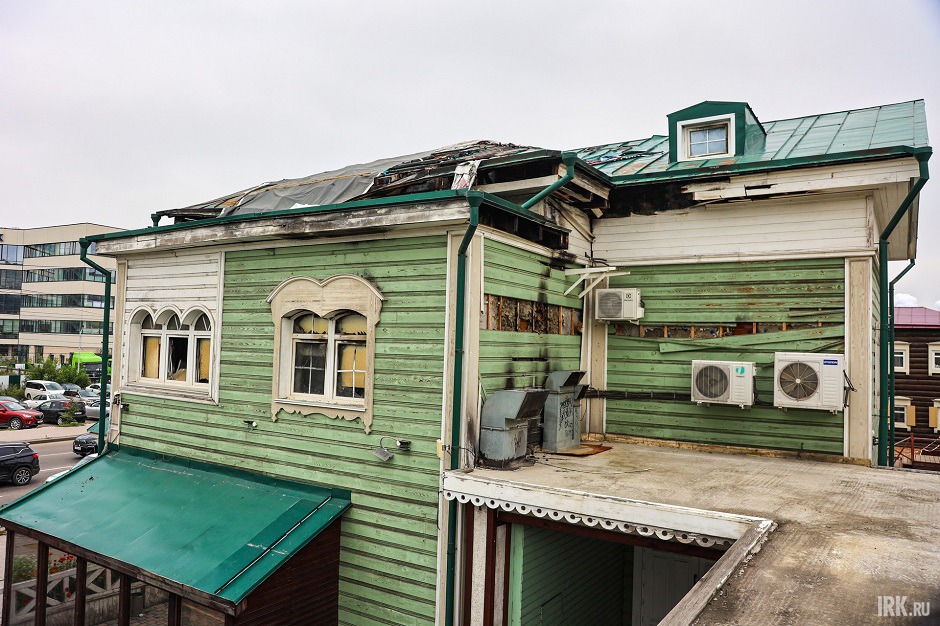 Если пройти вдоль 130-го квартала со стороны улицы Кожова, то можно заметить одно из строений, в котором еще в феврале 2023 года произошел пожар. Несмотря на то, что с момента возгорания прошло уже полтора года, фасад здания все еще не отремонтирован. На крышу накинули тент, который лишь частично скрывает последствия пожара, а окна все еще закрыты кусками фанеры. С внутренней стороны здания видны закопченные стены.