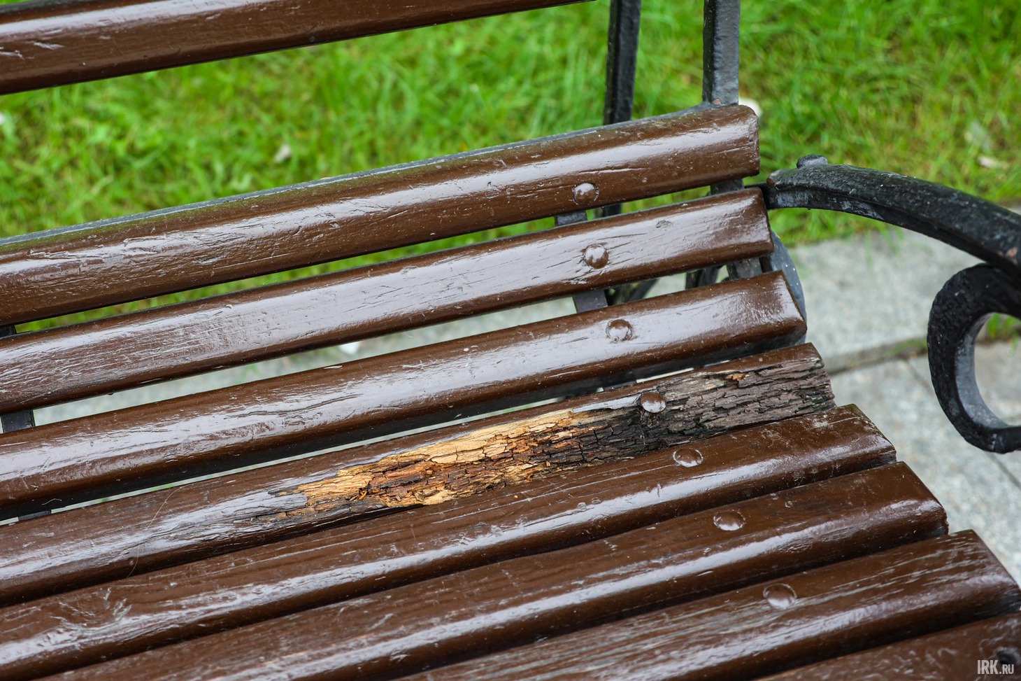 На протяжении всего квартала почти через каждые 2-3 метра стоят скамейки. Это, конечно, очень удобно, но не на всех из них можно спокойно сидеть, не переживая о том, что одежда зацепится за сломанное звено и порвется. На некоторых скамейках облетела краска, где-то проступает ржавчина, а где-то просто грязно. Но, видимо, самые сознательные предприниматели все же заботятся об окружающем пространстве: недалеко от «Модного квартала» рабочий старательно мыл водой из шланга скамейки и окружающий их настил.