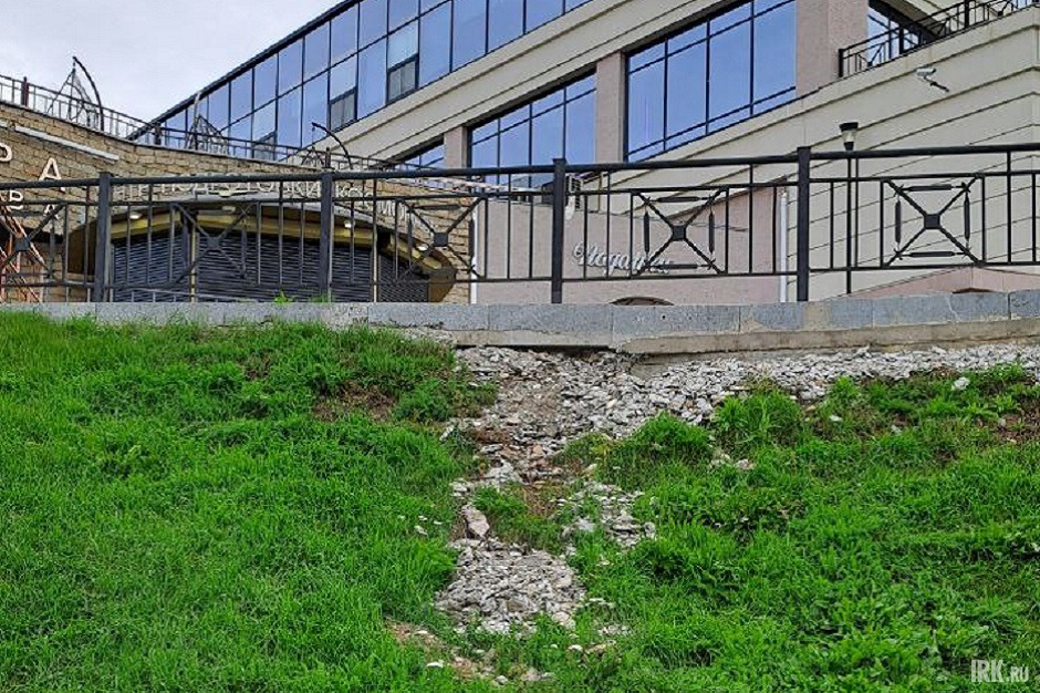 Снизу, куда потоки снесли землю и мелкие камни, также поставили барьер. На момент нашей прогулки рабочих на месте не было, зато была целая толпа туристов, которые с недоумением смотрели на перекопанную территорию. В администрации Иркутска рассказали, что ремонт участка планируют завершить к 15 сентября с учётом погодных условий. Мы следили за ходом работ на протяжении недели: к 5 сентября данный участок привели в порядок. Теперь на склоне остались только следы от потока. Несмотря на то, что работы завершили раньше указанного срока, этого недостаточно для того, чтобы 130-й квартал стал выглядеть привлекательнее.