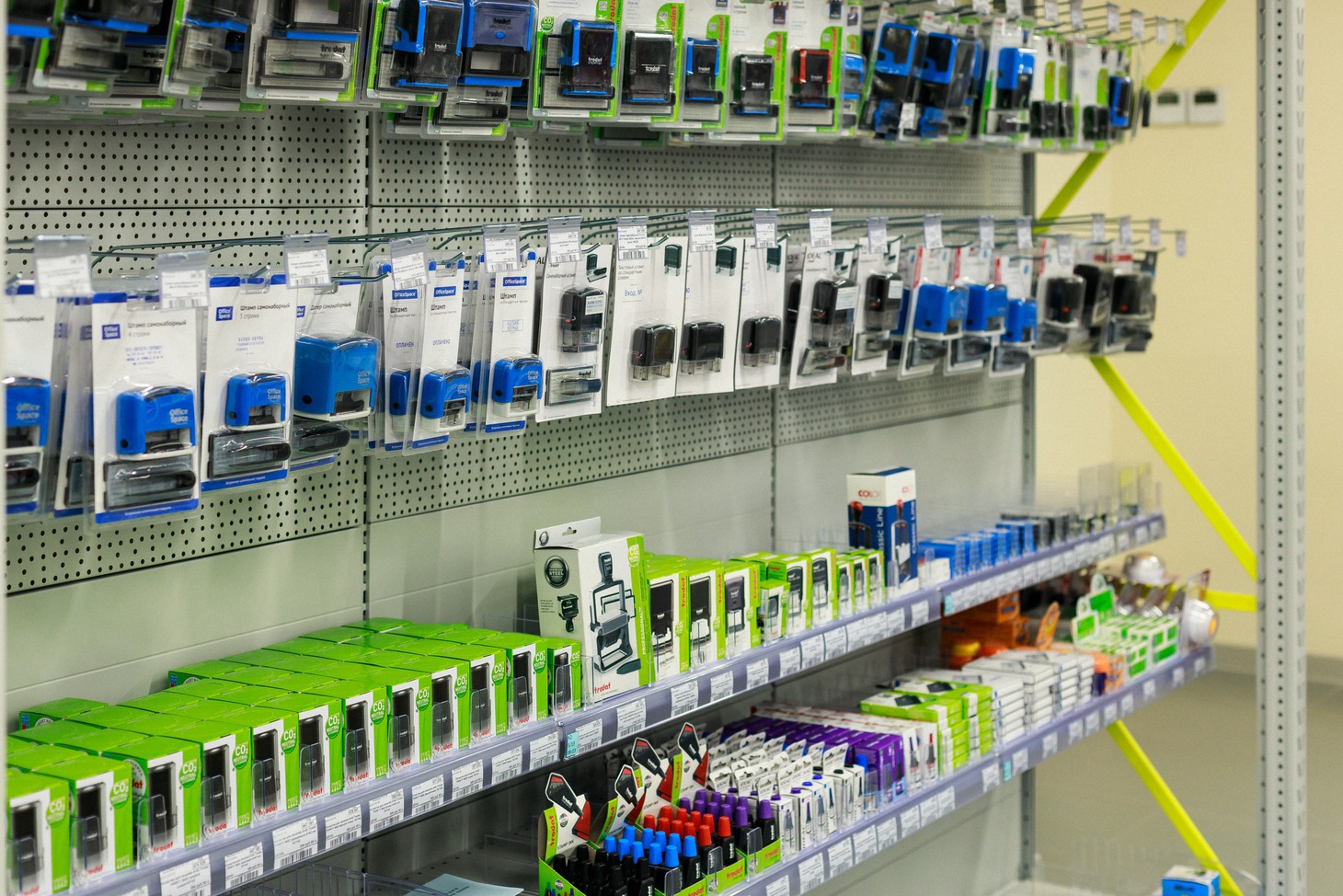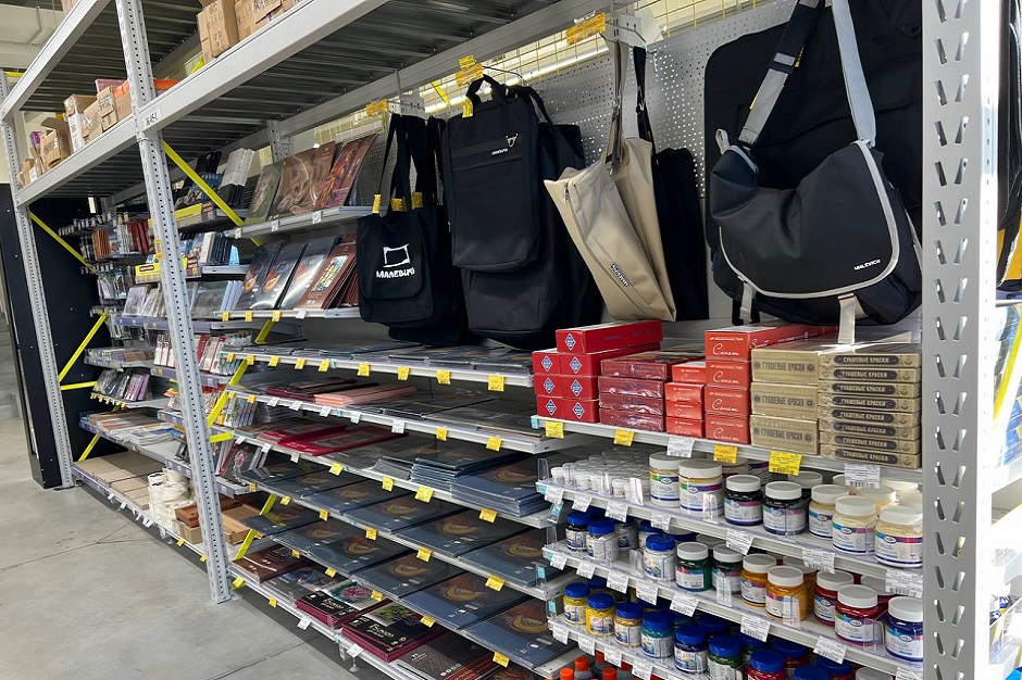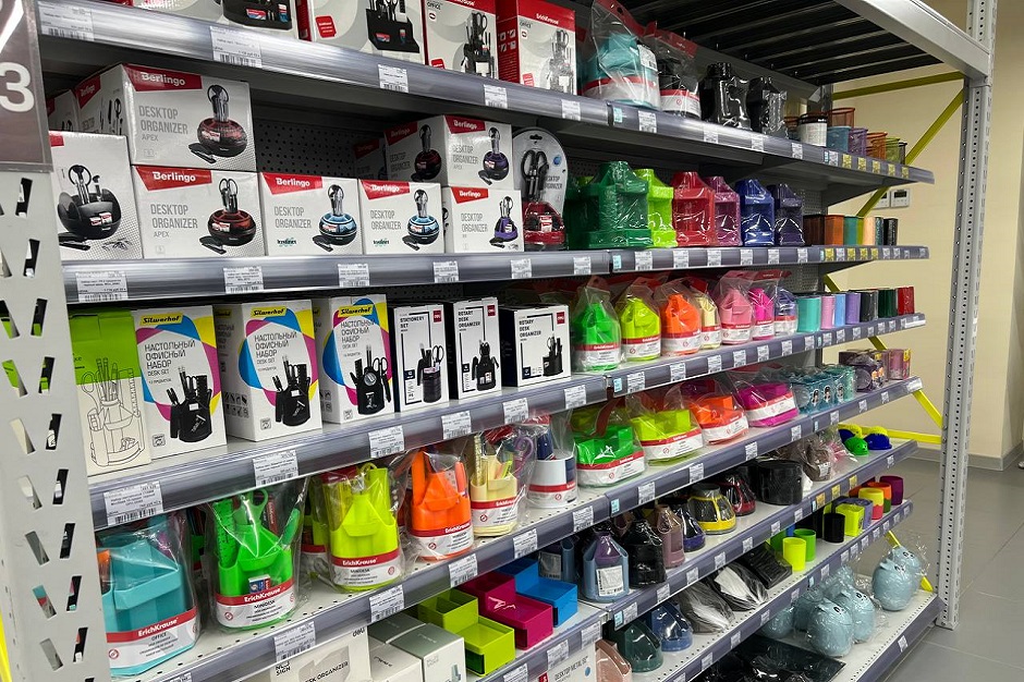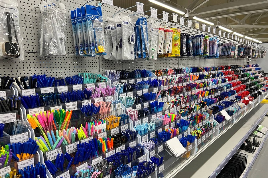 Двухэтажное здание — рай для любителей канцелярии. На полках магазина можно найти ручки, карандаши, ластики, блокноты, тетради, линейки, пеналы разных цветов и моделей. Товар на любой вкус сможет подобрать как ребенок, так и взрослый. Сотрудники компании отмечают, что в ассортименте представлены все известные бренды, выпускающие канцелярию. Среди них Erich Krause, Berlingo, BG, Silwerhof, «Канц-Эксмо», deVENTE, Maped1, а также бренд Meshu2, делающий стикеры, маркеры, планеры, капиллярные ручки, ежедневники в милом стиле, который понравится любителям корейской и японской культур.
