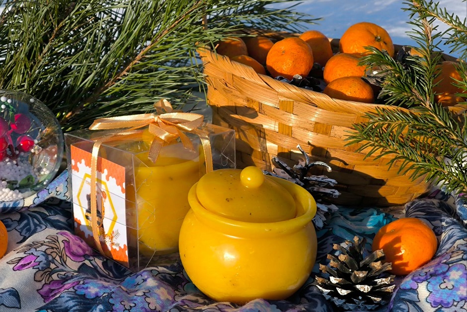 Если бы фотография могла передать аромат, то не нужно было бы писать ни слова. «Сладкий янтарь» в бочонке из пчелиного воска в подарочной упаковке станет прекрасным новогодним подарком.