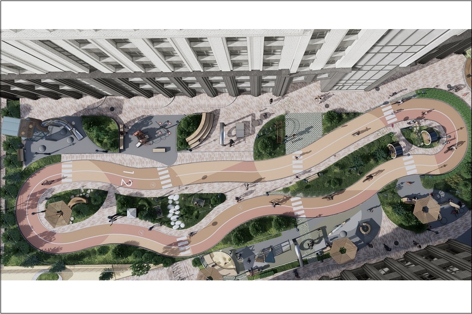 У жилого комплекса будет приватный двор, попасть в который можно только из подъездов дома. На территории обустроят спортивные площадки, зоны отдыха для детей и взрослых. Также авторы проекта создадут общедоступные смотровые площадки с видом на реку и фотозоны. От жилого комплекса сделают выход к воде —это целое сооружение 50 метров в длину - лестница, по которой будет удобно добраться до Ангары всех, в том числе и пенсионерам, и мамам с колясками.