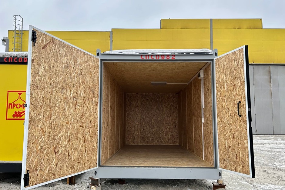 Надежное хранение и транспортировку вашего имущества вне зависимости от сезона обеспечат передвижные теплые склады. Также конструкцию можно использовать как мастерскую или гараж. Вагон-склад представлен в двух размерных вариантах 2,44х6х2,61 и 3х6х2,61 метра. Стоимость — 300 и 350 тысяч рублей соответственно.