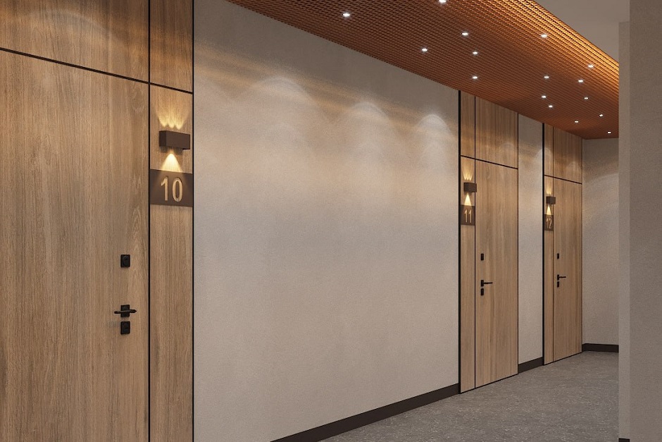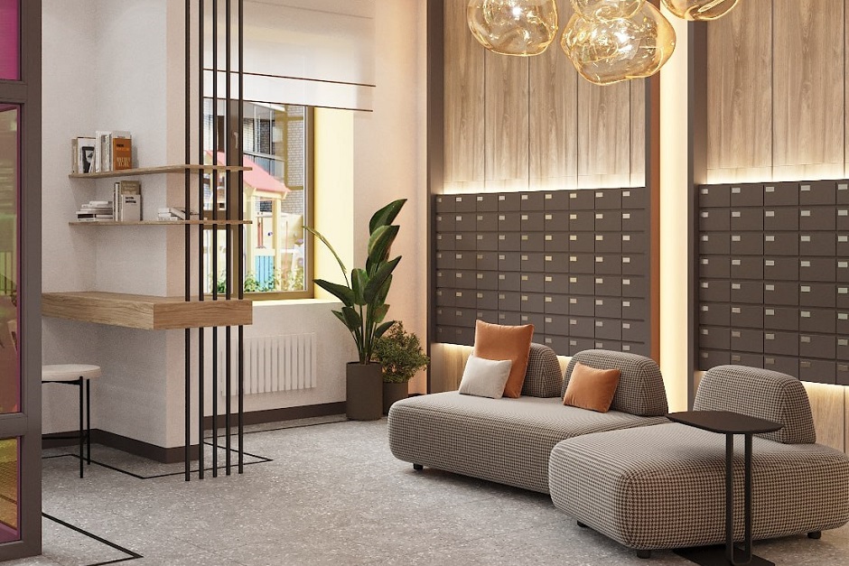 На первых этажах разместятся коммерческие помещения, а в парадной — гранд-холл, где можно будет встречаться с гостями и общаться с соседями. Там же будут находиться служба заботы о жителях, охрана, мини-кофейня, колясочная, санузел и небольшие смарт-офисы, которые можно будет сдавать в аренду.