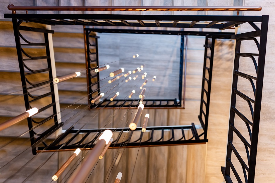 — Ценность, которую закладывал застройщик, — это наследие, импульс, поколение, традиция, — объясняет Наталья Добровольская. — Мне захотелось проявить этот сильный образ. На каждом этаже стоит функциональное искусство: объект имеет практическое назначение, но несет и художественный образ. На втором этаже — это корни, символизирующие связь с прошлым. На третьем — ствол, олицетворяющий настоящее, силу и опору. На четвертом — крона, как символ устремленности в будущее.