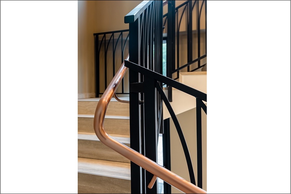 Идея единства и преемственности поколений, заложенная в концепцию дома, нашла свое продолжение и на жилых этажах. В коридорах при выходе из лифтов дизайнеры разместили не стандартные консоли, а уникальные функциональные арт-объекты — металлические «деревья».