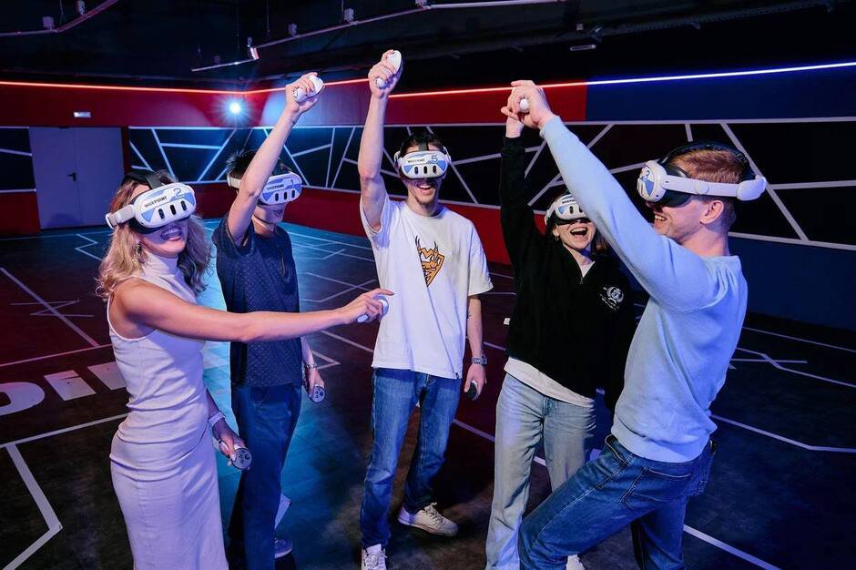 - Безопасность: мягкие покрытия и зоны безопасности на арене, инструктаж и помощь с настройкой VR‑гарнитур, наблюдение операторов за всеми участниками.