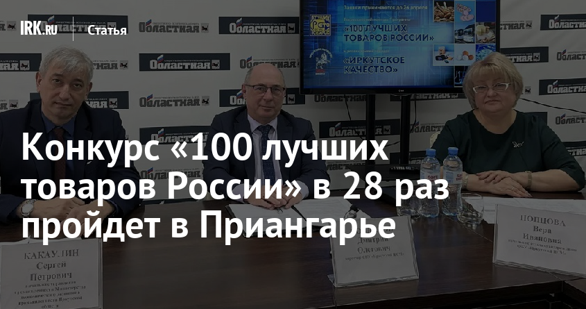 Пресс-конференция «100 лучших товаров России» состоялась 26 марта 2026 года в пресс-центре газеты «Областная». В ней приняли участие начальник управления промышленности министерства экономического развития и промышленности Иркутской области Сергей Какаулин, директор ФБУ «Иркутский ЦСМ» Росстандарта Дмитрий Солдатов и начальник отдела стандартизации «Иркутского ЦСМ» Росстандарта Вера Попцова.