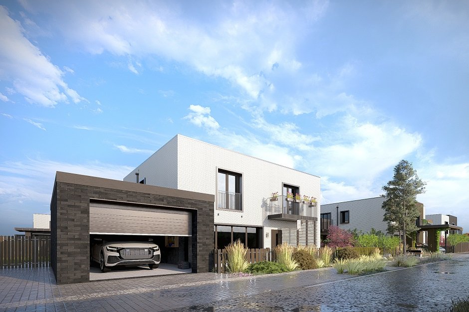 Площадь домов – от 170 до 272 квадратных метров, участки – от двух до 10 соток. Теплый гараж на две машины – не опция, а базовая комплектация. Для владельцев электромобилей это особенно важно: машина зимой не мерзнет, а заряжается по выгодному тарифу.