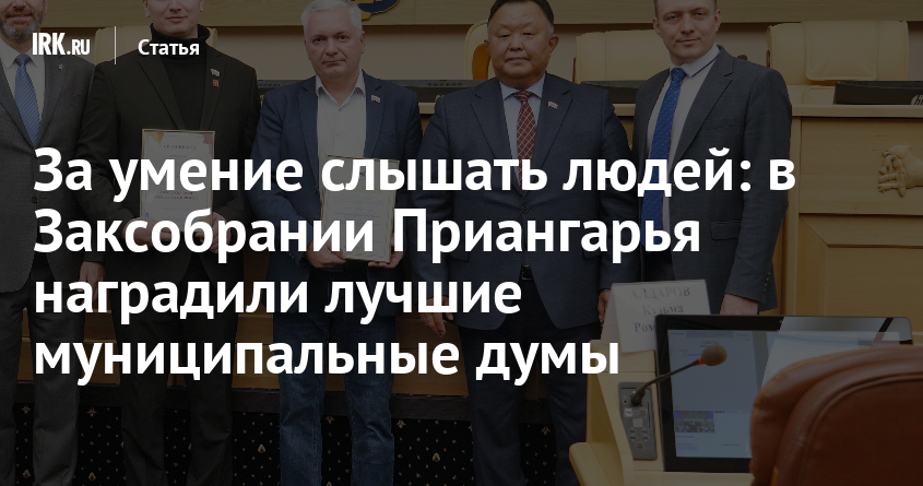 В номинации «Работа с обращениями граждан» лучшими признаны думы Усолья-Сибирского и Черемховского района. Получая награду, спикер думы Усолья-Сибирского Наталья Ефремкина подчеркнула, что работа с обращениями остается для депутатов безусловным приоритетом.