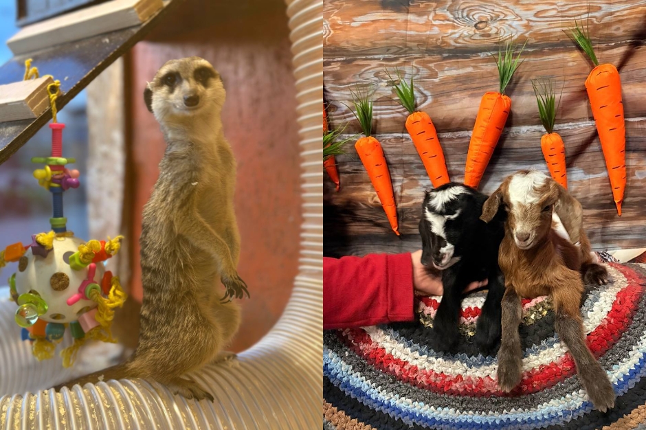 В эти майские дни в «Сибирском зоопарке» в Солнечном всё внимание — маленьким козлятам: их можно погладить, покормить молочком, поиграть.