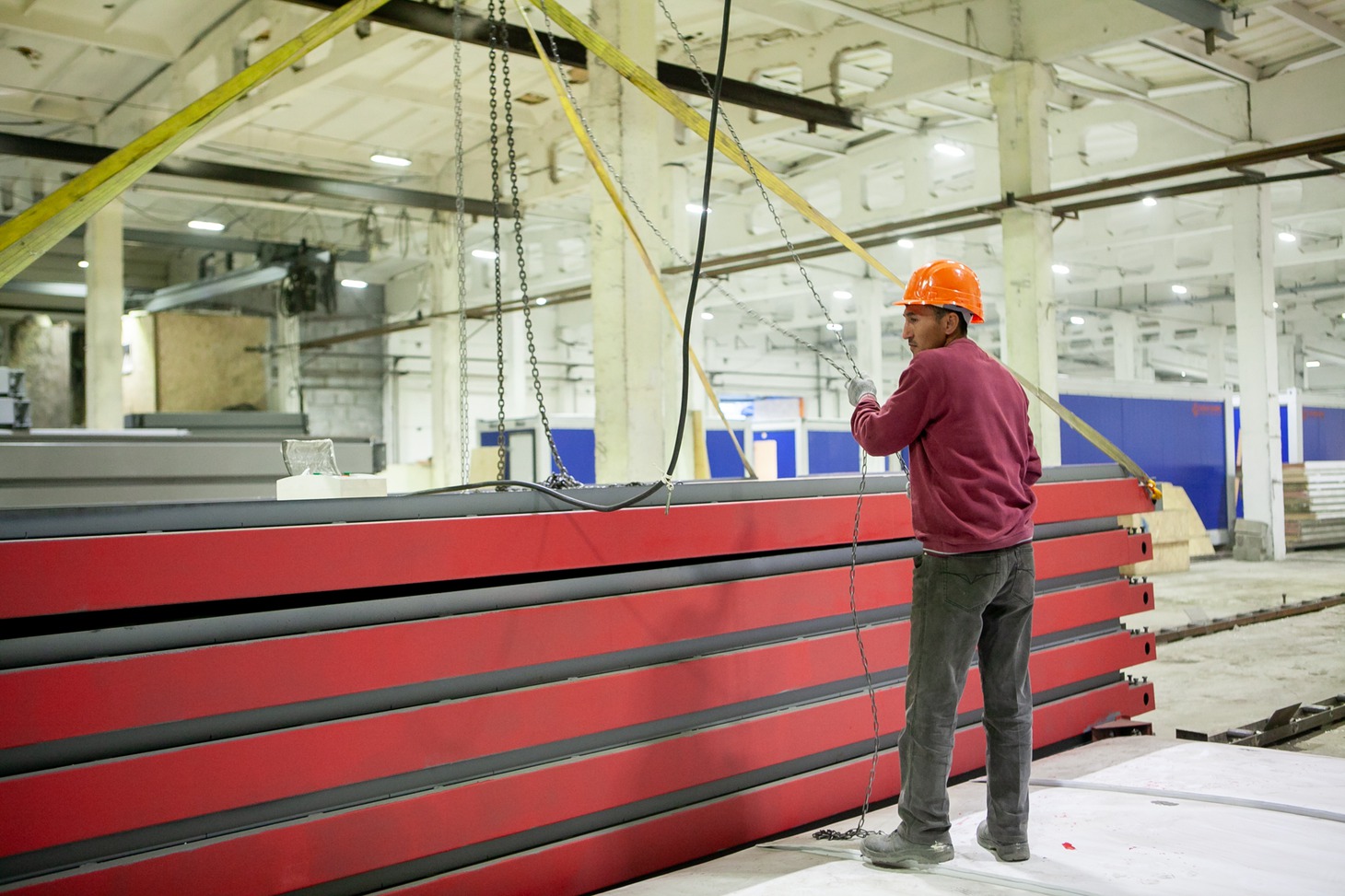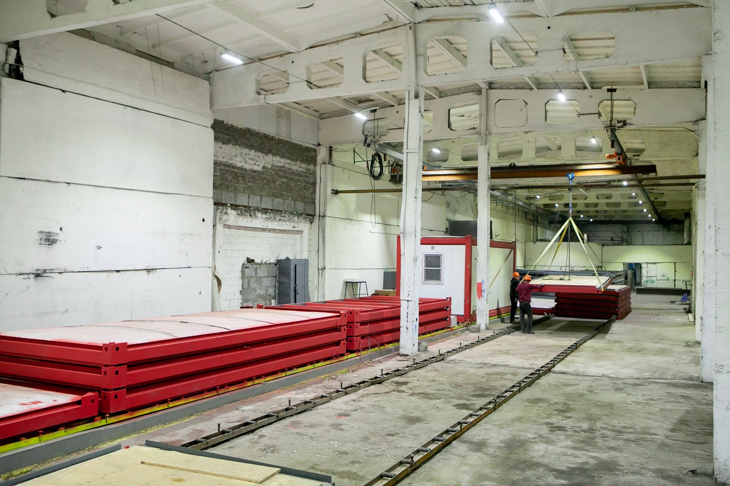 Работа с металлоконструкциями ведется в двух цехах. Мы находимся в первом, второй расположен на производственной площадке в 500 метрах отсюда. Там изготавливают крупногабаритные конструкции, которые идут не на вагон-дома и транспаки, а на большие строительные объекты. Сейчас второй цех реконструируют – там разместятся дополнительные посты сварочного, малярного и упаковочного цехов.