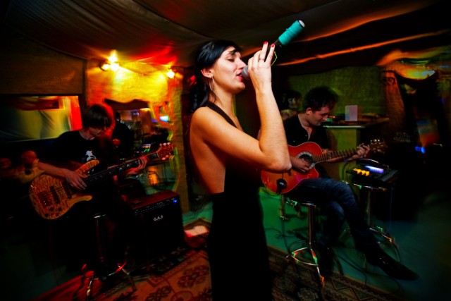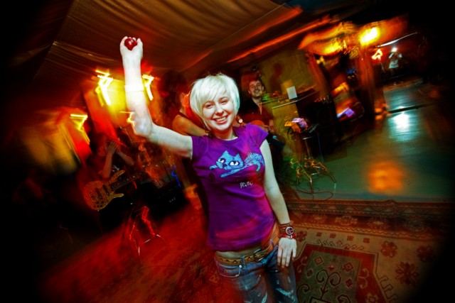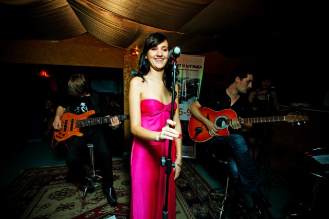 Думаю, что завсегдатаям клуба было вполне привычно на знакомом большом танцполе. В то время, как около полуночи на импровизированной сцене чилл-аута появилась удивительной красоты девушка в роскошном платье и запела… Ой, как запела!