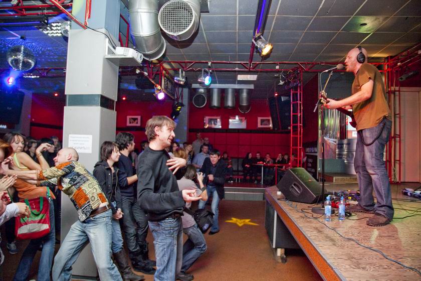 Теперь о самом концерте: меня, как человека неподготовленного, удивлял необычайный контраст концерта — огромный сорокалетний лысый мужик хриплым голосом поет девичьи песни певицы Максим. Здесь сложно не улыбаться. Он пел и свои известные песни, которые вызывали не меньше эмоций, но периодически вставляемые кавер-версии просто вышибали сознание из рамок. Одно дело «Billy’s Band» — к ним все привыкли. Но тут один человек с гитарой в течение 3 часов держал заведенным немалое количество людей, в перерывах спрашивая, что они еще хотели бы услышать, комментируя просьбы. И люди просили! А он пел.