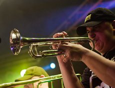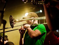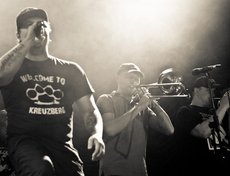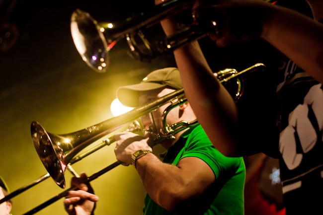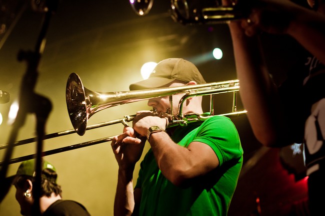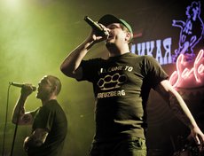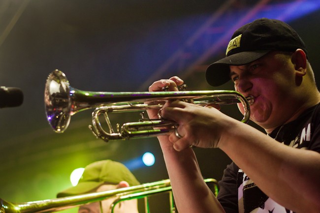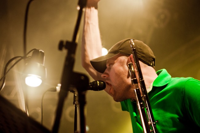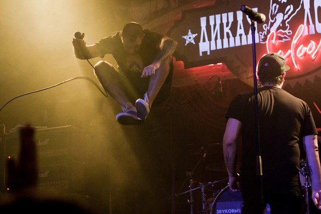 Сам концерт был предельно и не по-панковски организованным. Начали вовремя, закончили часа через полтора, канонично вышли на бис, удалились. Музыки очень не хватило. Хотелось больше. Все полтора часа — как один выдох. Лирика, провокация, трубы и позитив обрушивались просто в каких-то совершенно немыслимых количествах.