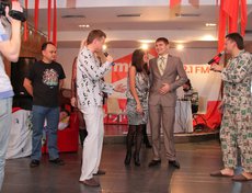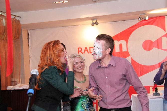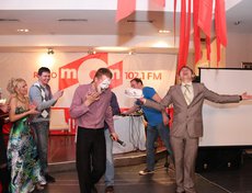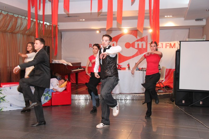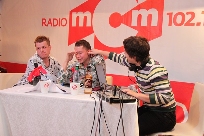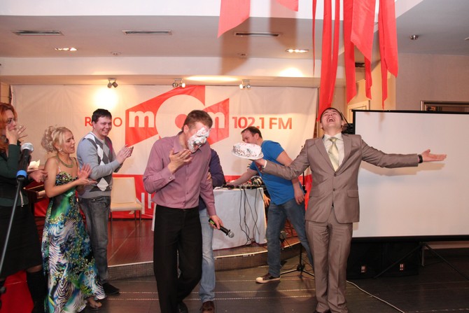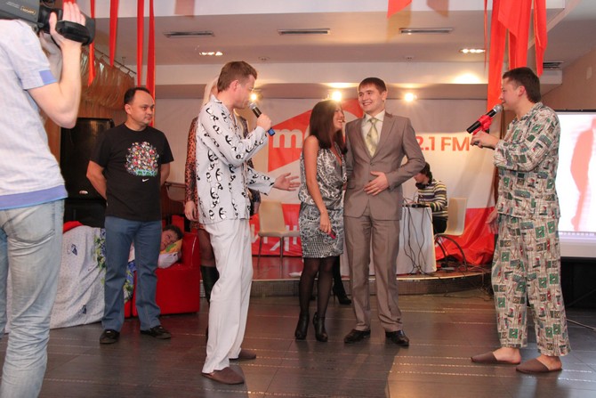 Наблюдать за тем, как выглядит радио с изнанки, можно было 3 декабря в ресторане «Седьмое небо». Сюрпризы начались уже с первых минут, как только персонал ресторана внезапно, бросив свои дела, стал двигаться в ритме МСМ. Изумленную публику продолжали эпатировать главные герои утреннего шоу «Пара пустяков» — Роман Белый и Леха Черный, которые приехали «в студию» в пижамах и тапочках.
