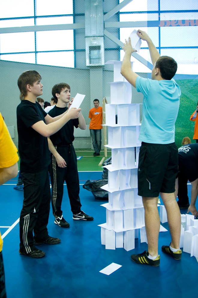 Более 2 часов шла эстафета. Участники проходили полосу препятствий, а также боролись за звание самого меткого, самого гибкого, самого внимательного при прохождении второго этапа эстафеты, состоящего из 8 интересных заданий. Знакомые всем дротики, теннисные мячи, обручи и бумага стали снарядами, умело используя которые можно было вырваться вперед. Все задания требовали умения работать в команде, согласованности и четкости совместных действий. Например, одно из заданий — построить макет здания к юбилею города. Оценивалась высота здания, надежность сооружения, а также оригинальность дизайна.