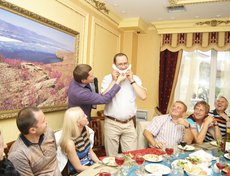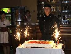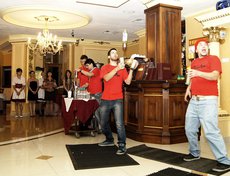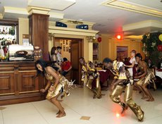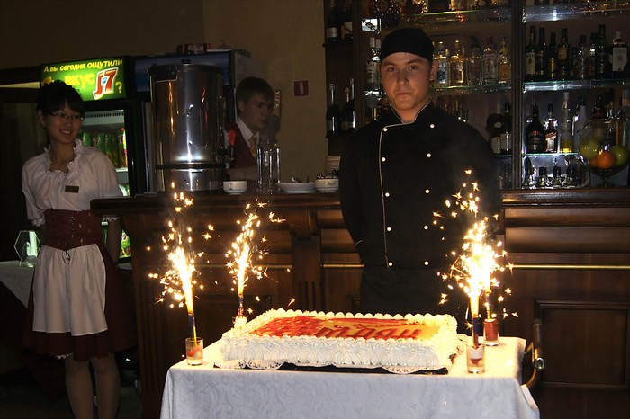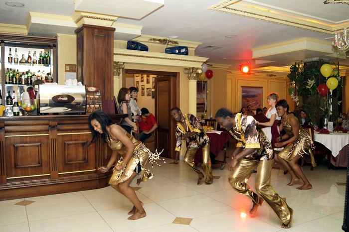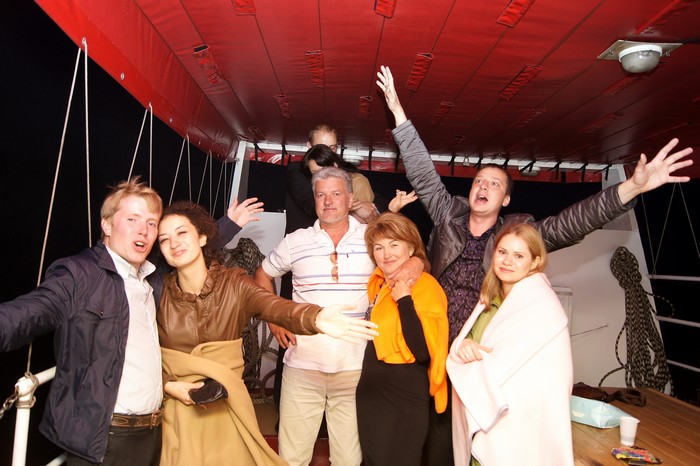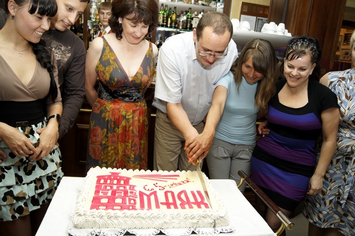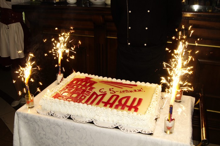 Вечером праздник под девизом «В Маяке всегда лето» продолжился в ресторане. Всех гостей встречали эффектные африканцы и дарили экзотические коктейли. А веселые бармены из клуба-ресторана Beerloga презентовали «Маяку» свое шоу. Завершился вечер торжественным салютом, который особо удачливые гости смогли посмотреть с борта теплохода, отправляющего их в романтический вояж.