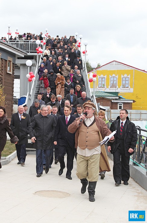 Торжественное открытие исторического квартала состоялось в день торжеств по случаю 350-летия Иркутска. «Иркутскую слободу» посетили высокопоставленные гости, после чего она открылась для всех желающих.