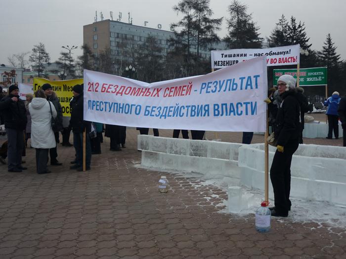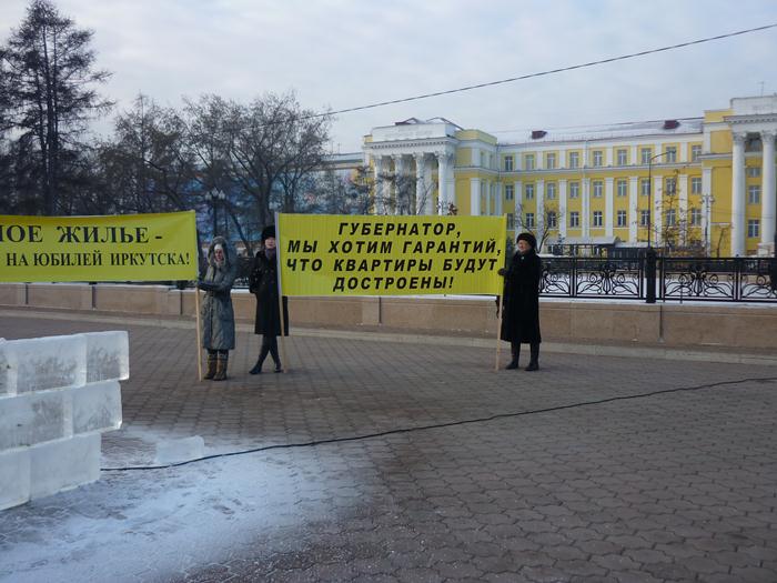 С таким и другими лозунгами дольщики «Иннокентьевской слободы» вышли 29 ноября на митинг на сквере Кирова. Участники митинга все еще ждут поддержки областных властей в их проблеме с «доступным жильем».