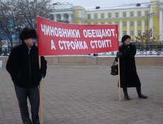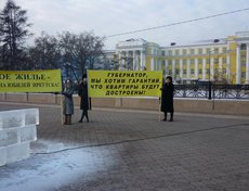 С таким и другими лозунгами дольщики «Иннокентьевской слободы» вышли 29 ноября на митинг на сквере Кирова. Участники митинга все еще ждут поддержки областных властей в их проблеме с «доступным жильем».